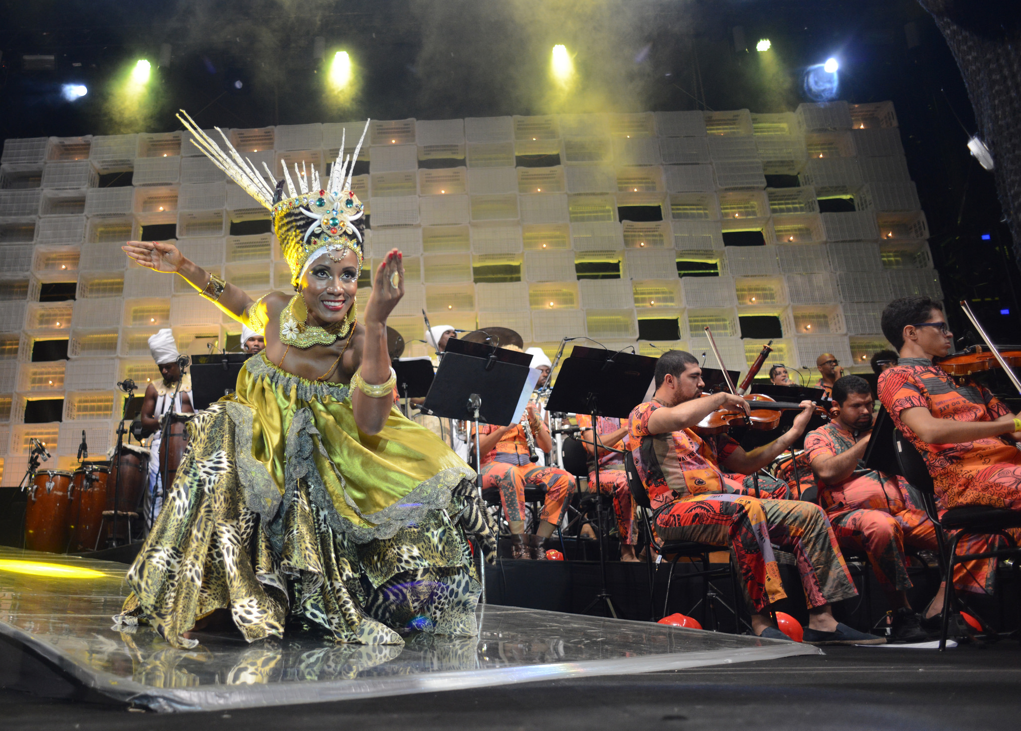 [caption id="attachment_57008" align="aligncenter" width="460" caption="Fotos: Imas Pereira"][/caption] Carlinhos Brown, Ellen Oléria, Lazzo e Mariene de Castro se encontraram ontem, mais uma vez, no palco do Museu du Ritmo para celebrar o Concerto Pérolas Mistas, que é idealizado pelo próprio Brown, com direção artística de Elísio Lopes Jr. A segunda edição desta temporada do espetáculo aconteceu ontem (20) e surpreendeu novamente o público presente por apresentar uma proposta diferenciada, que com conceitos cênicos-teatrais busca valorizar a cultura afro-baiana, promovendo a união da música negra da Bahia com a música clássica da Orquestra de Câmara de Salvador, regida pelo Maestro Ângelo Flávio. “A música baiana tem esse poder de agrupamento, de unir as pessoas”, conta Ellen Oléria. Em meio ao público, ilustres espectadores: o cantor Caetano Veloso e seu sobrinho Jota Veloso e os atores Antônio Pitanga e João Miguel. Os blocos afros são homenageados durante o concerto com entradas da Deusa de Ébano, Muzembela, Rainha do Ilê e Veco do Sombreiro. Para finalizar a noite, os Filhos de Gandhy se apresentaram e, na última música, convocaram os solistas para juntos se despedirem do público.
