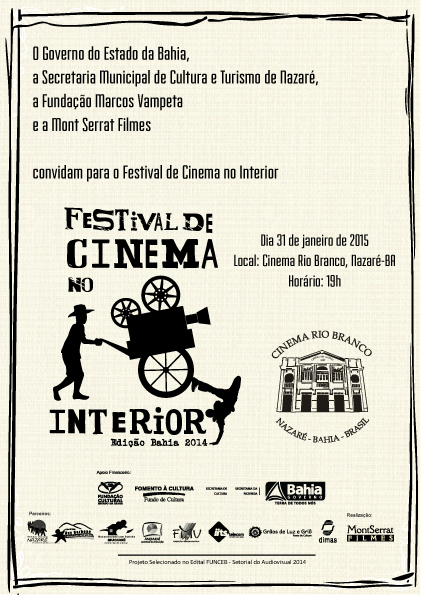 O interior baiano e seus habitantes vão ganhar as telas de cinema, protagonizados no Festival Cinema no Interior. O projeto, que chega pela primeira vez à Bahia, já rodou sete estados do Nordeste, além de atuar em alguns países do continente americano e contar com a parceria do Festival de Cinema de Contis, na França. Os municípios escolhidos para viver essa experiência audiovisual foram Nazaré, Ruy Barbosa, Lençóis, Andaraí e Mucugê. Moradores dessas cidades, entre estudantes, artistas e demais atores sociais, deram vida a cinco curtas-metragens, atuando, durante semanas, como pesquisadores, roteiristas, produtores e protagonistas de suas próprias histórias. O resultado será lançado no dia 31 de janeiro, às 19 horas, no Cinema Rio Branco, na cidade de Nazaré, Recôncavo Baiano. A entrada é gratuita.