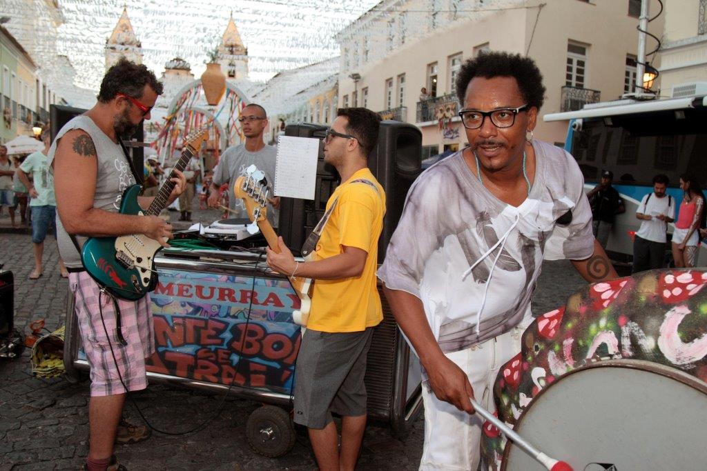 O folião pipoca se esbaldou de alegria no final desta tarde (12/02), na abertura do Carnaval da Cultura 2015, no circuito Batatinha (Centro Histórico), com o cantor e compositor Peu Meurray, que circulou com seu microtrio “Gente Boa se Atrai”. Cantando clássicos de antigos carnavais e composições autorais, Peu deu voltas no Terreiro de Jesus, deixando crianças, jovens e famílias em plena animação. “Peço licença poética à festa para apresentar este trabalho retrô, além disso, é um grande prazer circular numa festa tão democrática como esta. Vejo muita alegria, porque, gente boa se atrai”, frisou. Peu apresentou ao público o trabalho feito com pneus usados, cujos tambores e objetos se transformam em instrumentos. “Achei muito interessante o tipo de música que ele cria, mas o melhor é o prazer que dar para dançar”, disse a holandesa, Avalon Brown, que curtia pela primeira vez o carnaval em Salvador.