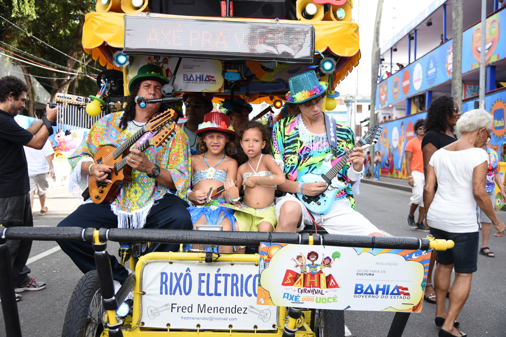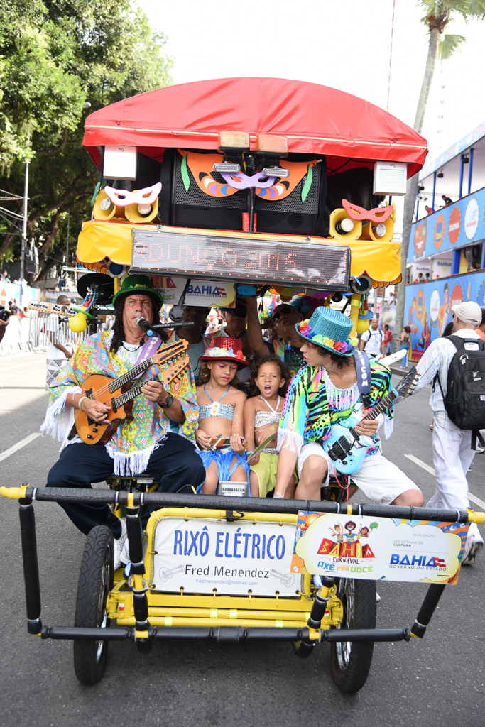 Foi debaixo de muito sol, suor e animação que os foliões acompanharam o Microtrio Rixô Elétrico na tarde deste sábado (14) no Circuito Barra – Ondina. O público foi contagiado pela animação da guitarra baiana de Fred Menendez, que resgatou clássicos dos antigos carnavais.