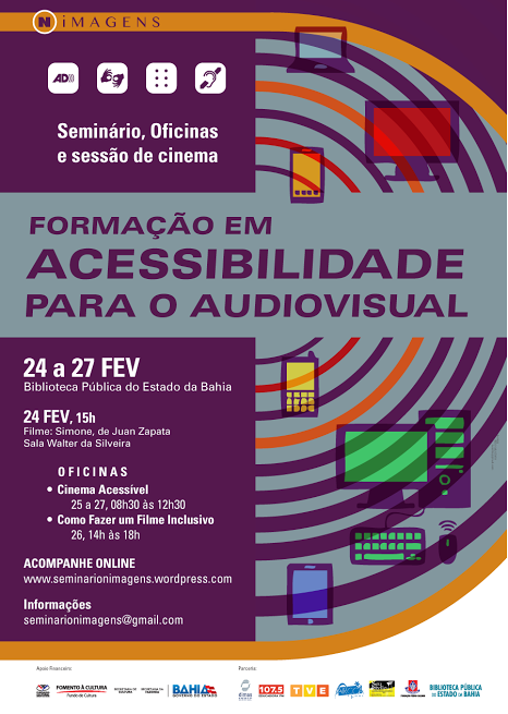 O quê: N IMAGENS: Formação em Acessibilidade para o Audiovisual Quando: 24 a 27 de fevereiro, das 08h30 às 17h Onde: Biblioteca Pública do Estado da Bahia, Barris Quanto: Gratuito Mais informações: Seminário N Imagens