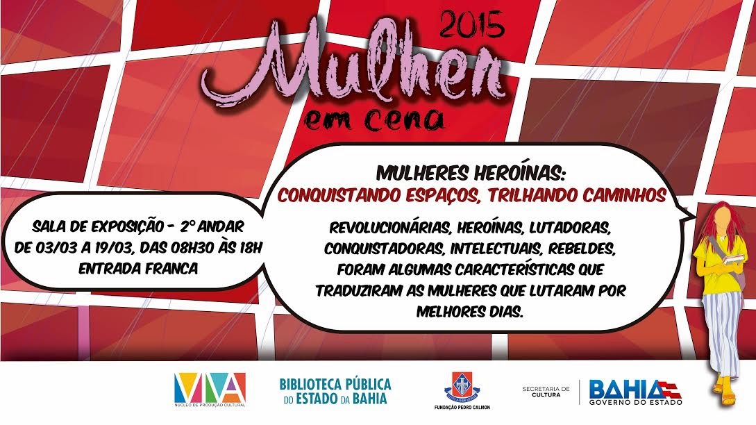 Está em cartaz até o próximos dia 19 de março, quinta-feira, a mostra Mulheres Heroínas: Conquistando Espaços, Trilhando Caminhos, na Sala de Exposição, 2º andar da Biblioteca Pública do Estado da Bahia, Barris.