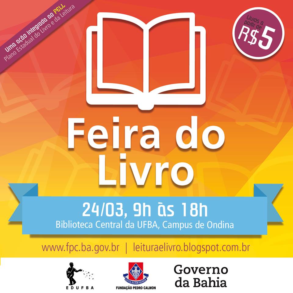 Na próxima terça-feira (24/08), das 9h às 18h, a tradicional Feira de Livros da Diretoria do Livro e Leitura da Fundação Pedro Calmon (DLL/FPC) será realizada no campus da Universidade Federal da Bahia, em Ondina, em frente à Biblioteca Universitária Reitor Macêdo Costa. Com a proposta de comercializar livros a preços acessíveis, a Feira terá obras de diversos gêneros literários, de escritores baianos e de outros estados, com preços a partir de R$5.