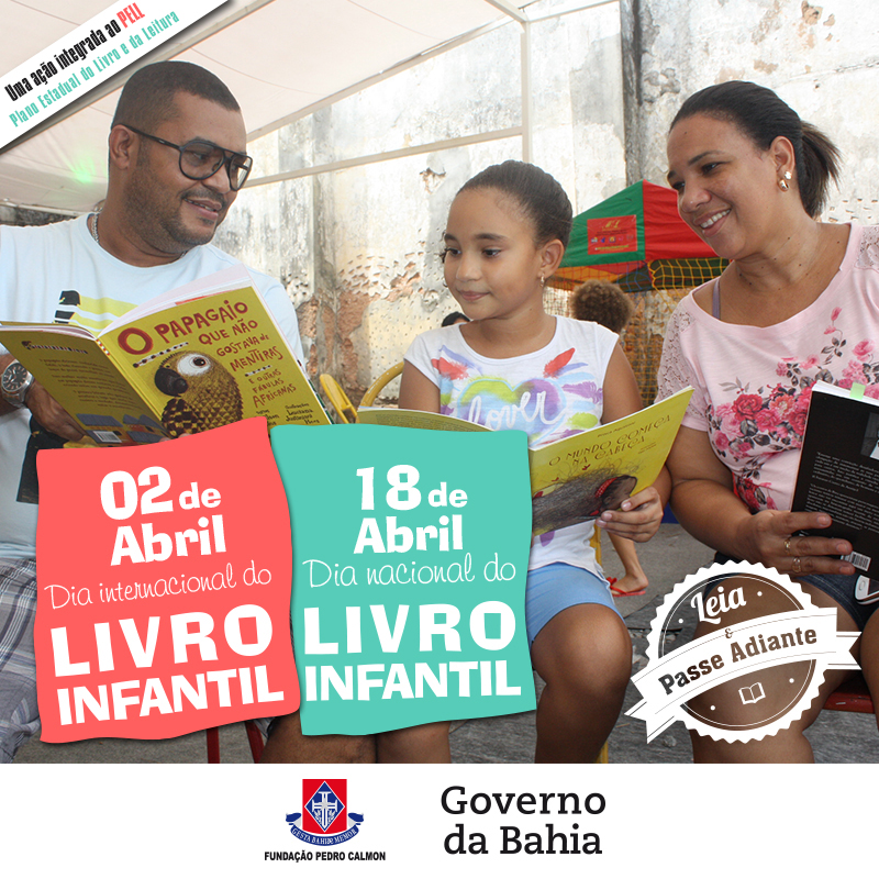 Em homenagem ao Dia Internacional do Livro Infanto Juvenil e o dia Nacional do Livro Infantil, dias 2 e 18 de abril respectivamente, a Fundação Pedro Calmon/SecultBA lança nas redes sociais uma edição especial da Campanha Leia e Passe Adiante, que tem como objetivo promover a leitura enquanto prática social, em consonância com o Plano Estadual do Livro e Leitura (PELL-BA). A campanha especial veiculará, a partir desta quarta (2), nas redes sociais da Fundação – Facebook, Instagram, Twiter – imagens de crianças e jovens lendo obras infanto juvenis, pais e mães lendo para seus filhos e professores lendo para alunos. A edição especial consiste em associar a imagem de leitores ao ato e ao prazer de contar e ouvir histórias, mostrando que um livro pode chegar a muitos por meio deste tipo de leitura coletiva. Na ação das redes sociais, as pessoas retratadas também serão estimuladas a sugerir livros infantis, passando adiante sua experiência, engajando-as, portanto, no contexto da campanha. Foram convidados artistas, escritores, poetas, leitores em geral para que possam fortalecer esta prática entre as crianças e jovens. >> Confira a Campanha especial emhomenagem à literatura infantil aqui.