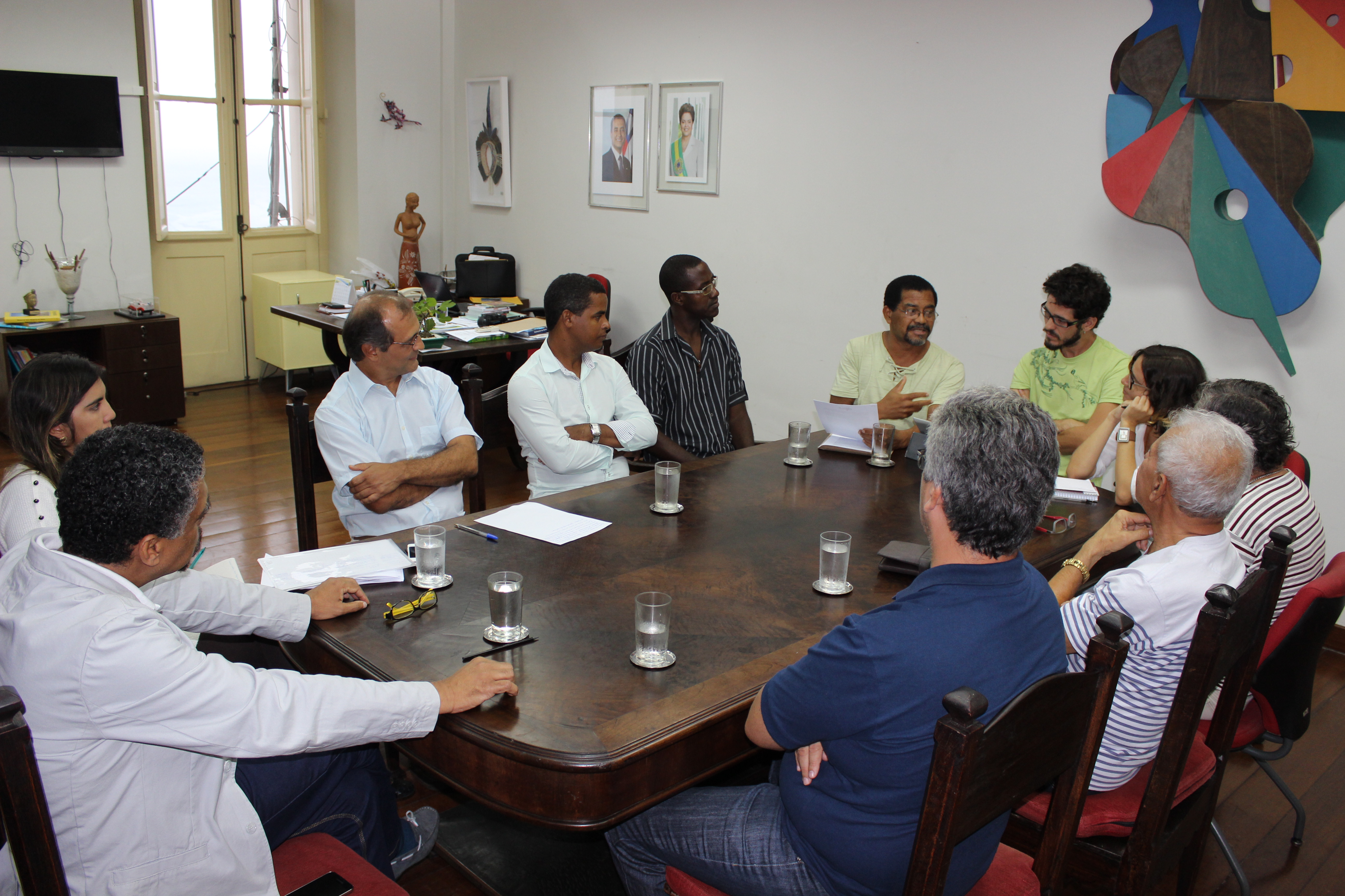 O secretário de Cultura do Estado, Jorge Portugal, teve uma reunião com representantes da FEBAF (Federação das Bandas Filarmônicas da Bahia) de diferentes territórios de Identidade reuniram-se na tarde desta sexta-feira (10.04), com o objetivo de discutir incentivos e apoio a estas instituições tradicionais de música. No gabinete do secretário, foi entregue uma carta da entidade com as demandas discutidas e o contexto atual das filarmônicas. Além da FEBAF, o encontro teve a presença de Joel Barbosa, professor de música da Universidade Federal da Bahia (UFBA) e Cássio Nobre, coordenador de Música da Fundação Cultural do Estado da Bahia (Funceb).