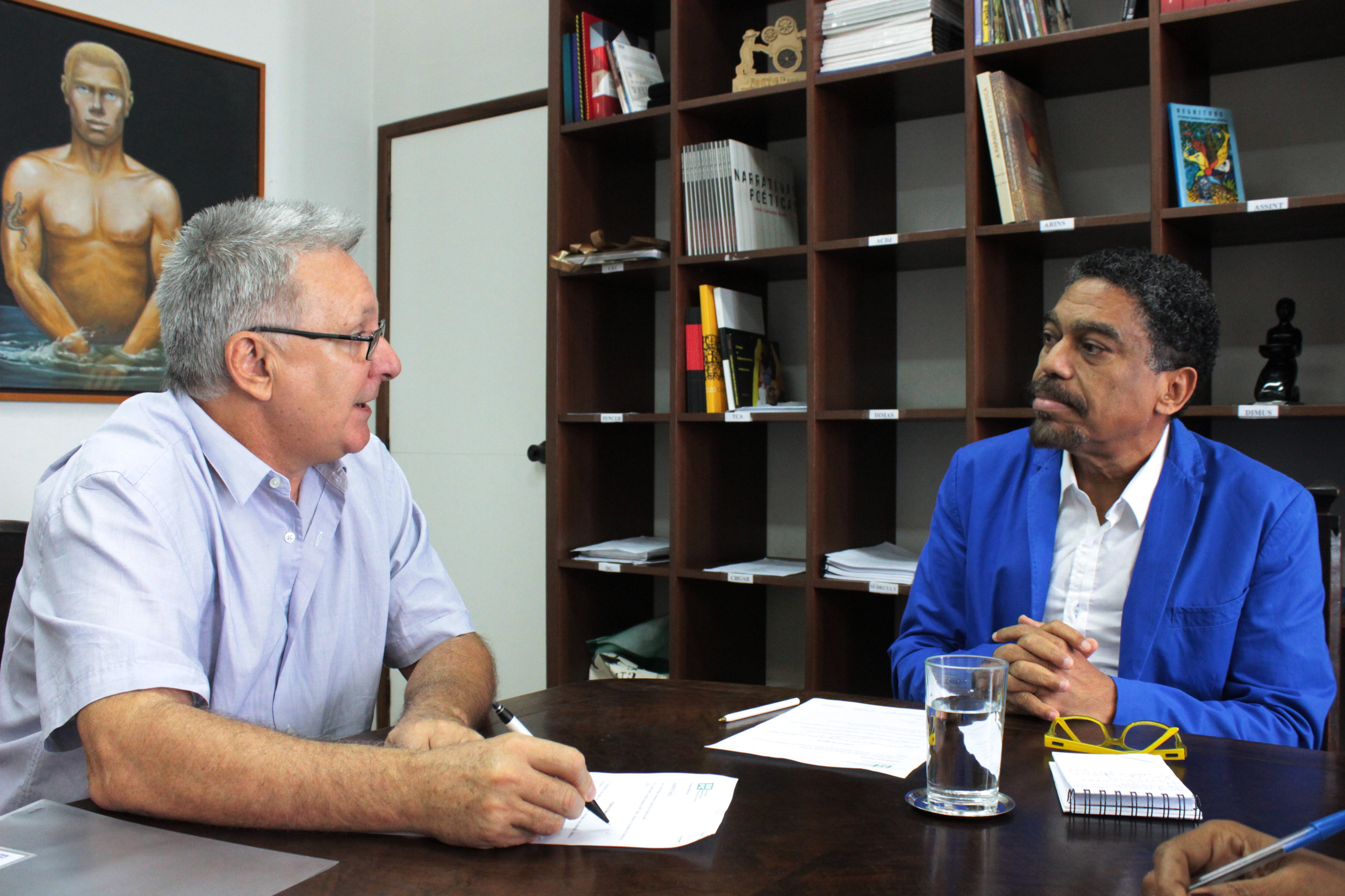 Em reunião nesta segunda-feira, 13, o secretário de Cultura do Estado da Bahia (SecultBA), Jorge Portugal, e o professor e secretário regional da Sociedade Brasileira para o Progresso da Ciência (SBPC), Nelson Pretto, discutiram as relações entre cultura, educação, ciência e tecnologia. Entre as possibilidades apontadas por Nelson está a elaboração de um plano de banda larga para a Bahia, "uma questão estruturante para a Cultura", apontou, que poderia culminar em uma articulação entre Pontos de Cultura e Pontos de Ciência e Tecnologia. "Além disso, precisa-se dinamizar o Museu de Ciência e Tecnologia, em Pituaçu. Tem muitas coisas acontecendo na Bahia que são frutos de inúmeras mentes inventivas e que relacionam todas essas áreas. Para catalisar isso, será necessária uma articulação entre Secretaria de Ciência e Tecnologia (SECTI), a Secretaria de Educação (SEC) e a SecultBA", explicou Nelson. Também foi discutida uma possível parceria para a realização da reunião regional da SBPC em 2016.