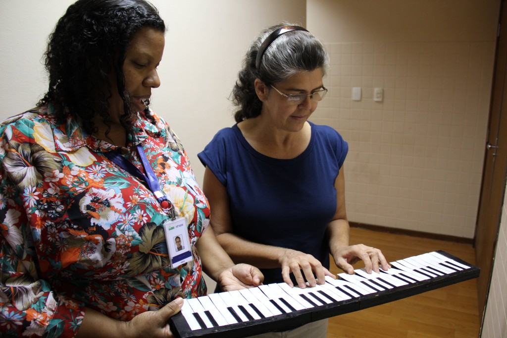 Sem titubear, ela compareceu à Instituição e se matriculou. Após o período inicial de musicalização, a senhora de 52 anos finalmente tocou pela primeira vez em um teclado. Ela conta que foi na CDS onde deu seu primeiro acorde musical. "Senti que era difícil, como se fosse matemática. Mas, com o tempo, você vai aprendendo as técnicas e tudo fica mais fácil", compara.