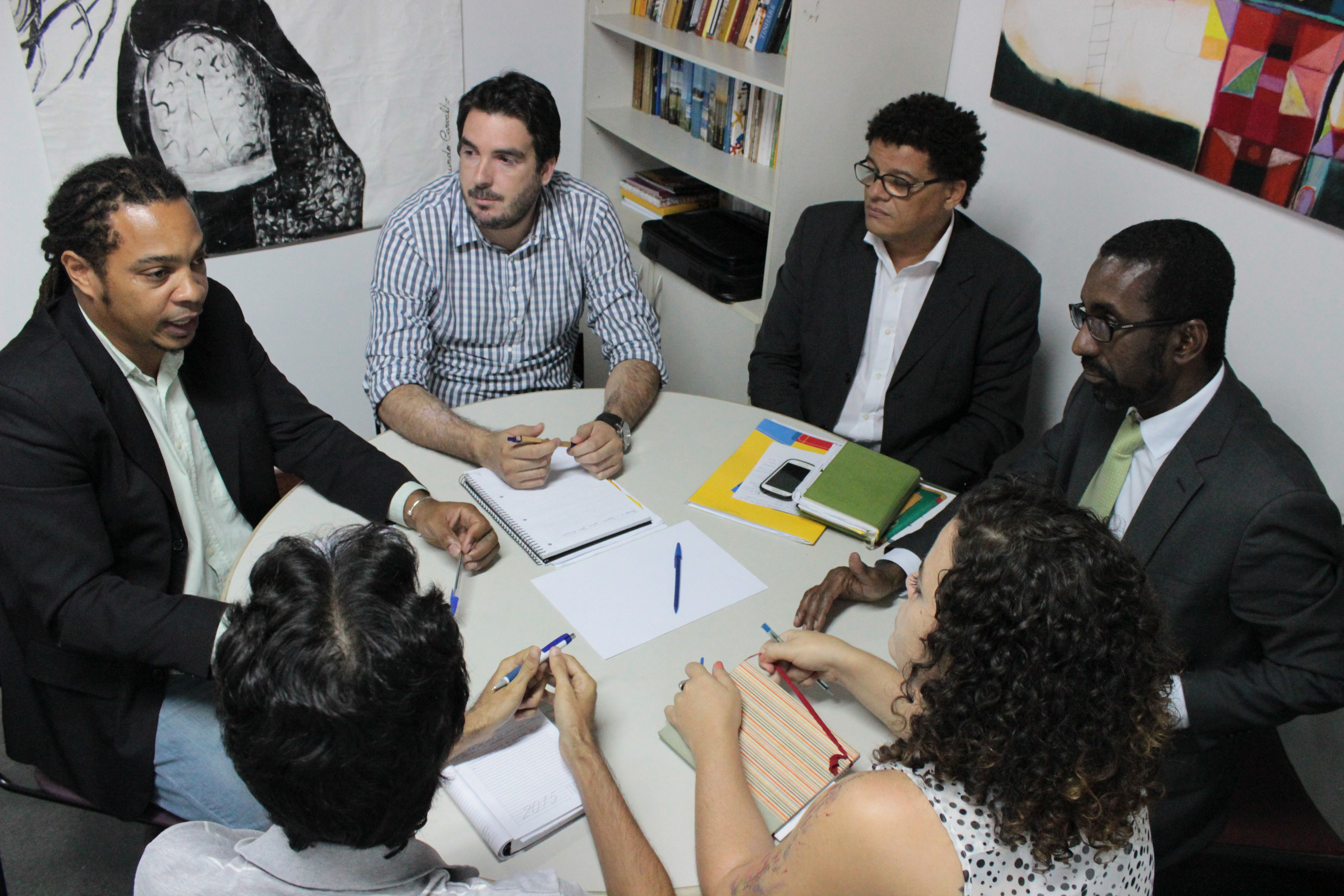 Nesta quinta-feira, 16, representantes das Secretarias de Promoção da Igualdade Racial (SEPROMI) e de Cultura do Estado da Bahia (SecultBA) reuniram-se no Palácio Rio Branco para dialogar sobre projetos para a juventude. Intervenções de cunho cultural voltadas para a juventude, desenvolvimento do Programa Jovens Multiplicadores, além de parceiras para o fortalecimento das ações foram pauta do encontro, que contou com a presença do superintendente de Desenvolvimento Territorial da Cultura, Sandro Magalhães, da diretora de Cidadania Cultural, Luísa Saad, da Coordenação de Promoção da Igualdade Racial (CPIE), Cristiano Lima e Sérgio São Bernardo, e do Coordenador Executivo da Coordenação de Políticas para as Comunidades Tradicionais (CPCT), Ailton Ferreira.