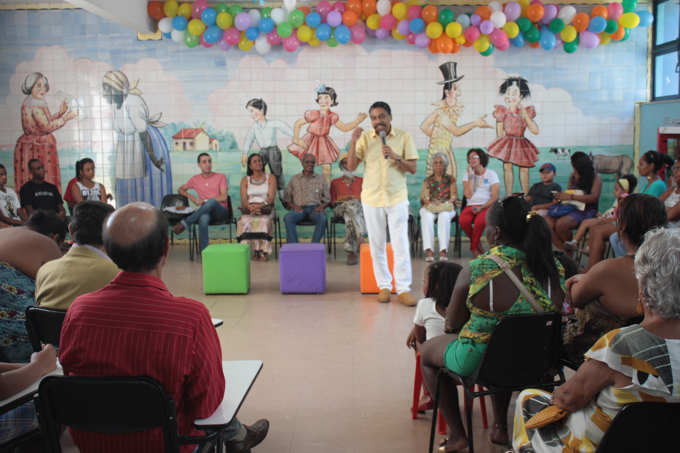 Dedicada à literatura infantil, a Biblioteca Infantil Monteiro Lobato (BIML) celebrou na manhã deste sábado (18/04), o aniversário de 65 anos com bate papo, recital, dança, música e o tradicional “parabéns para você”. A unidade localizada no bairro de Nazaré aproveitou a oportunidade para homenagear os “antigos leitores”, na ocasião, representados por personalidades baianas como Mabel Veloso (professora e escritora), Jorge Conceição (professor e escritor), Cristina Santos (diretora de Bibliotecas Públicas da Bahia/FPC), diretor da Fundação Pedro Calmon/SecutBA, Zulu Araújo e o secretário de Cultura, Jorge Portugal. Na oportunidade e recordando dos tempos de adolescentes, Jorge Portugal falou como a instituição foi importante na sua formação. “A primeira emoção é da memória do garoto que morava no Tororó e passava as manhãs aqui, pois estudava a tarde e encontrou na Biblioteca Monteiro Lobato a sua segunda casa”,
