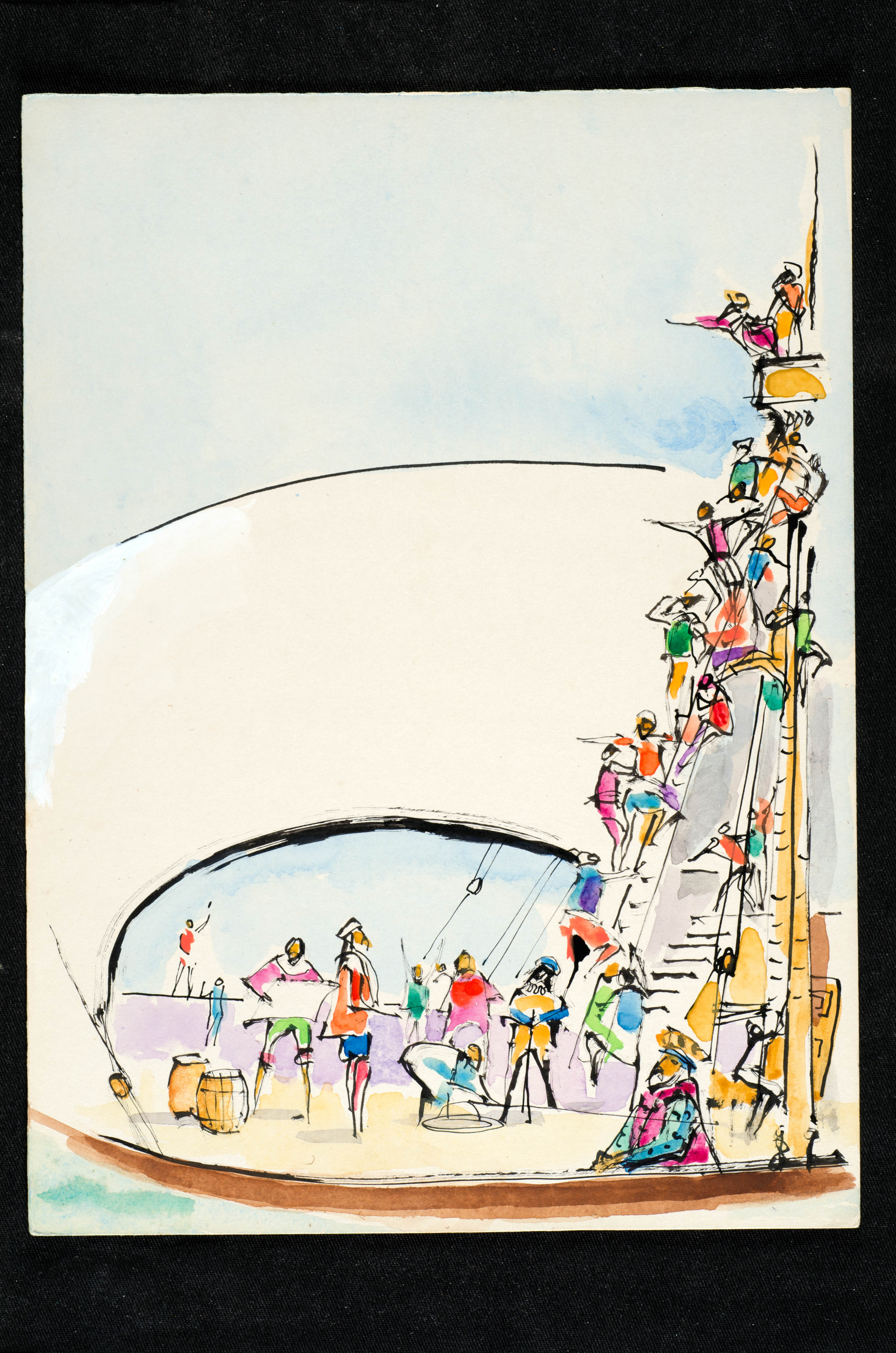 do registro mais antigo sobre a existência do Brasil, a Carta de Pero Vaz de Caminha. A ilustração compõe a obra Carta a El Rey Dom Manuel, uma releitura do documento histórico idealizada pelo escritor Rubem Braga e publicada em 1981. Assim nasceram as 50 obras que integram a exposição, que retrata os momentos mais marcantes da narrativa portuguesa sobre o Brasil.