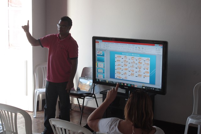 Referência dentre as Bibliotecas Públicas do estado na assistência ao público surdo, a Biblioteca Anísio Teixeira (Pelourinho) realiza até esta sexta (24), um ciclo de formação em Libras aberto ao público. A atividade começou na tarde desta quarta (22), com a Oficina em Libras, dada pelo instrutor, Marcos André Neves. No público, estudantes universitários e profissionais da Educação. É o caso da professora Maria Helena Ferreira, que ensina na Escola Municipal Filhos do Abrigo do Povo (Liberdade) e é frequentadora assídua da Biblioteca. “Sempre aparece um aluno com deficiência auditiva e outras deficiências. Temos um GT de Inclusão na escola e resolvemos nos capacitar para atender estas crianças”, pontuou.
