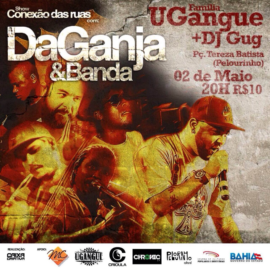 No dia 02 de Maio vai acontecer a primeira edição do evento Conexão das Ruas, que reunirá no Pelourinho dois importantes nomes da música Rap feita na Bahia. Estão programados no evento shows do rapper “DaGanja” que vem acompanhado por sua banda e da grande revelação do rap nacional “Família Ugangue” que vem apavorando por onde passa. A pista promete ferver ao som do Dj GuG. Serviço: Conexão das Ruas com DaGanja e Família Ugangue + Dj GuG Onde: Largo Tereza Batista, Pelourinho Quando: 02 de Maio, sábado, 20h Quanto: R$ 10$ Contato: moncarvalho3@gmail.com, tel: 71 9985-2190
