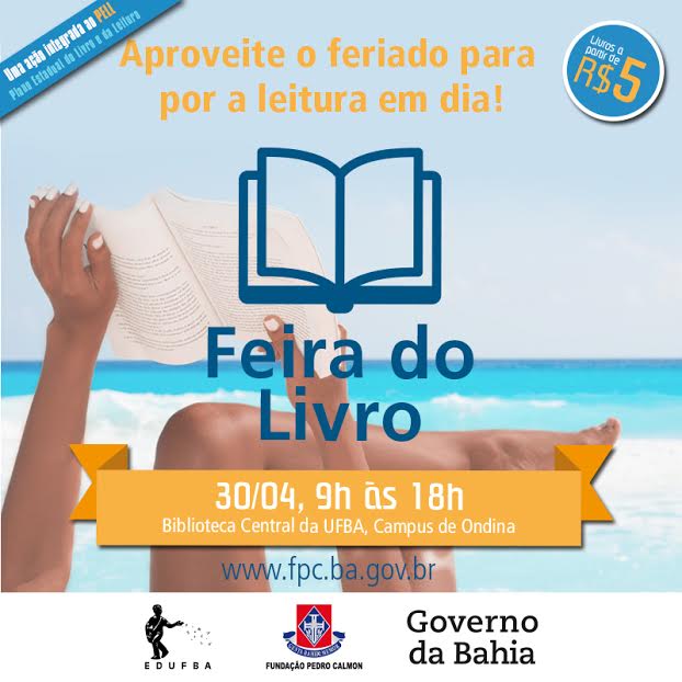 Na próxima quinta-feira (30/04), das 9h às 18h, a tradicional Feira do Livro, da Diretoria do Livro e Leitura da Fundação Pedro Calmon (DLL/FPC), acontecerá no campus da Universidade Federal da Bahia, em Ondina, em frente à Biblioteca Universitária Reitor Macêdo Costa. Na Feira, leitores poderão adquirir livros a preços acessíveis, dentre obras de diversos gêneros literários, de escritores baianos e de outros estados, com preços a partir de R$5.