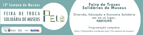 Em celebração ao Dia Internacional de Museus (18 de maio), o Conselho Internacional de Museus (ICOM) e o Instituto Brasileiro de Museus (IBRAM) promovem a 13º edição da Semana de Museus que acontece de 18 a 24 de maio, abordando a temática “Museus para uma sociedade sustentável”. Na Bahia, os museus da Secretaria de Cultura do Estado da Bahia (SecultBA), incluindo os espaços vinculados à Diretoria de Museus do Instituto do Patrimônio Artístico e Cultural da Bahia (DIMUS/IPAC), participam com atividades voltadas ao tema proposto (veja programação completa abaixo). São eles: Museu de Arte Moderna da Bahia (MAM), Centro Cultural Solar Ferrão, Museu Abelardo Rodrigues, Museu de Arte da Bahia (MAB), Museu Tempostal, Museu Udo Knoff de Azulejaria e Cerâmica e Palacete das Artes – todos em Salvador -, além do Parque Histórico Castro Alves, em Cabaceiras do Paraguaçu.