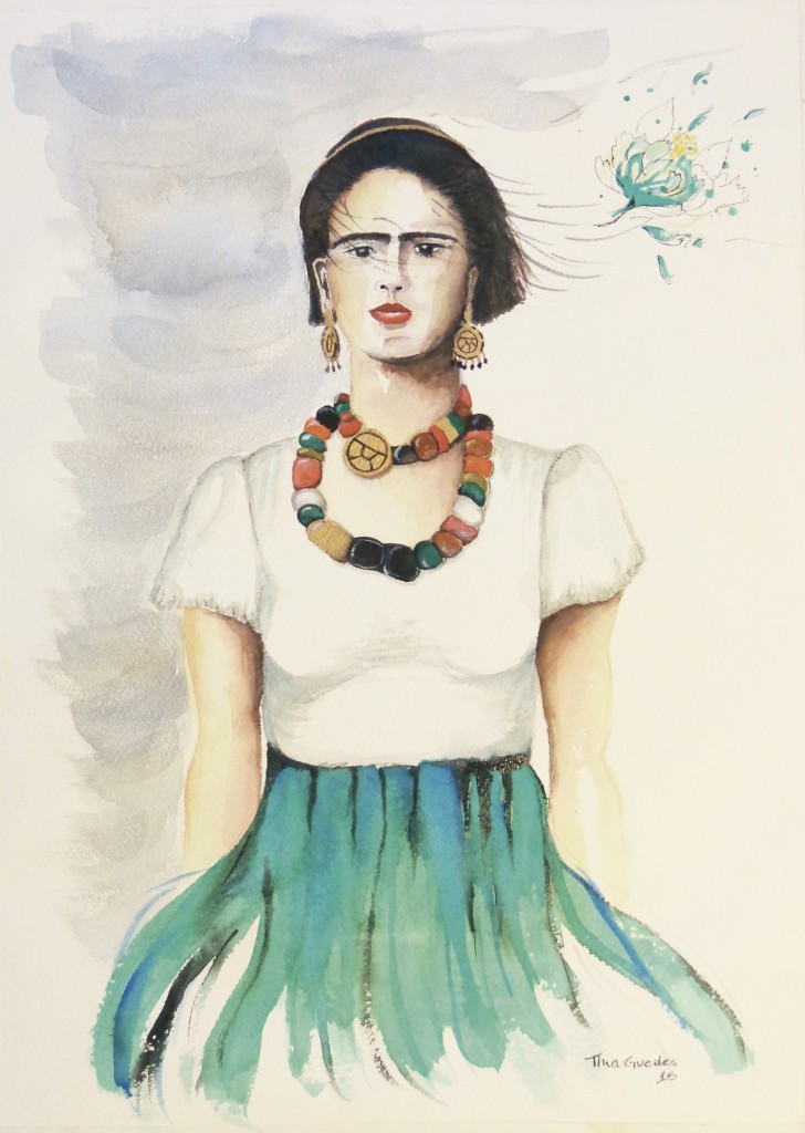 Estão lá retratadas situações românticas do cotidiano dos casais - beijos no cangote, longos banhos a dois, passeio de bicicleta, mãos dadas, entre outras cenas -, e quatro telas reproduzindo Frida Kahlo. Afinal, a artista mexicana não só amou como poucos mortais, como foi feminina ao seu jeito.