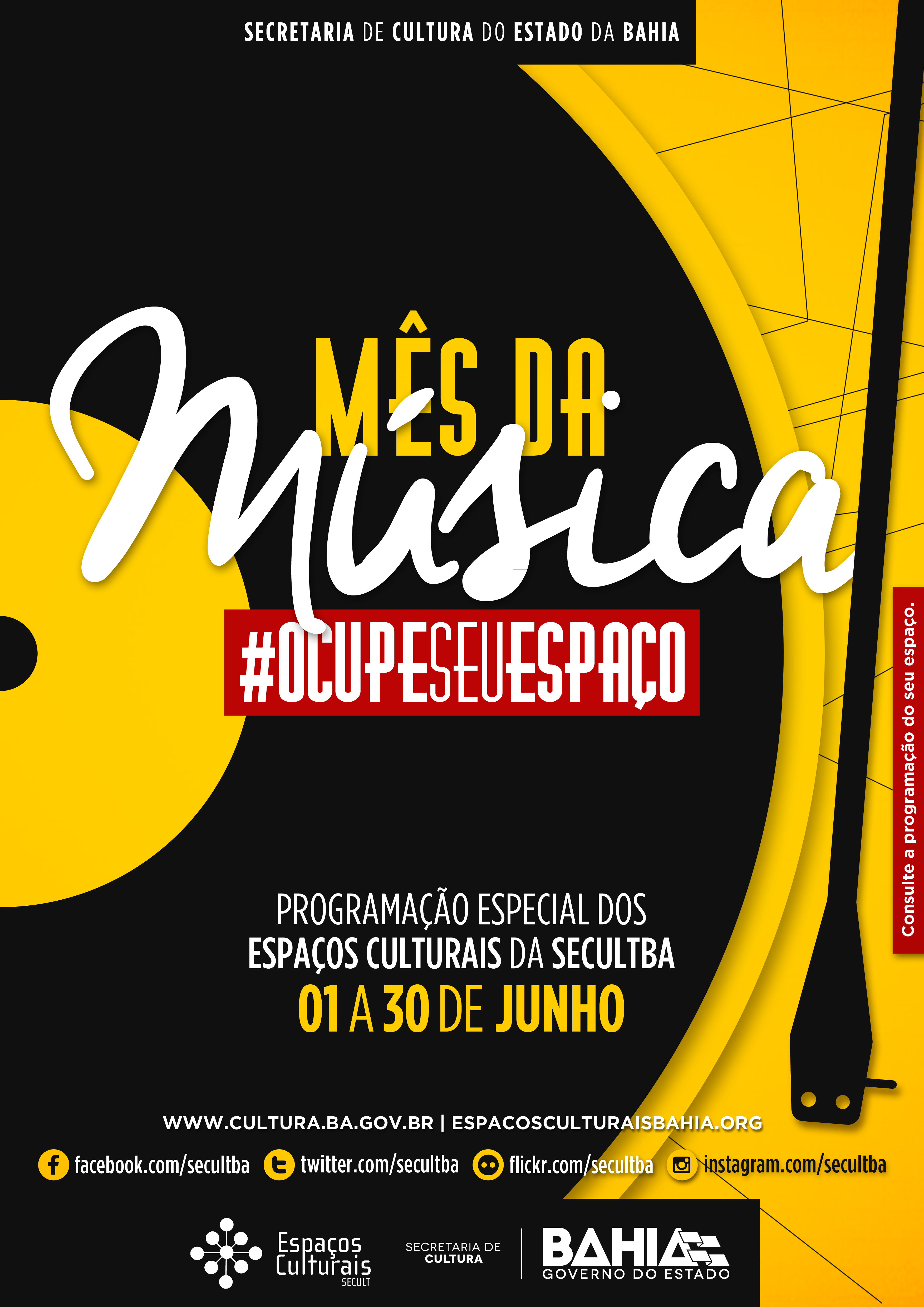 Para celebrar o Dia da Música, comemorado internacionalmente no dia 21 de junho, os Espaços Culturais da Secretaria da Cultura do Estado da Bahia (SecultBA) oferecem uma intensa programação que contempla shows para todas as idades e de diversos ritmos, espetáculos musicais e oficinas de instrumentos e de dança. No Espaço Xisto Bahia, localizado no Bairro dos Barris, em Salvador, o evento Só sei que tem Samba traz o tradicional grupo VivaVósformado por avós de Salvador, que leva seu repertório de samba de raiz ao Espaço Cultural no dia 02, às 20h. Os ingressos custam R$20 e R$10 (meia). Também em Salvador, O Cine Teatro Solar Boa Vista, localizado no Engenho Velho de Brotas recebe o nos dias 08 e 09, às 10h o espetáculo musical Minino. A narrativa apresenta o universo particular da criança e do adolescente, abordando temas atuais numa linguagem infanto-juvenil que vão do nascimento, passando pela relação escolar, mergulhando nas novas tecnologias e o uso da internet. Os ingressos custam R$ 4 e R$ 2 (meia). O Centro Cultural de Alagoinhas promove música pra todos os gostos. No dia 06, às 20h tem Tributo a Pink Floyd e The Doors. As entradas custam R$ 10 e R$ 5, mas, como no mês de junho não pode faltar forró, o Centro também promove oficinas do ritmo característico da cultura nordestina com o professor Carlos André. A turma tem capacidade para 30 alunos e o investimento é de R$ 40. Também tem oficina no Centro de Cultura de Mutuípe: o professor Paulo Silva promove workshop de violão nos dias 03, 10 e 17 de junho, às 15h. O investimento é de R$ 30 e os interessados devem realizar as inscrições no local. Em Porto Seguro a criançada vai se divertir com o musical Enrolados. A adaptação do longa-metragem que conta uma versão moderna de Rapunzel, chega ao Centro de Cultura de Porto Seguro nos dias 06 e 07, às 17h. As entradas custam R$60 e R$30 (Meia). A música não para por aí, no dia 18, às 9h, acontece o Festival de Teatro e Música com artistas locais. Os ingressos custam R$20 e $10. O projeto Casa das Artes promove gratuitamente no Centro Cultural Olivia Barradas, em Valença oficinas de percussão durante todo o mês de junho. As inscrições estão abertas e são realizadas no local. O mesmo projeto oferece oficinas de Dança Contemporânea, Pintura, Maquiagem Artística, Grafite, Escultura, Circo e Teatro. Espaços Culturais da SecultBA - A Secretaria de Cultura do Estado da Bahia mantém 17 espaços culturais geridos pela Diretoria de Espaços Culturais (DEC), e localizados em diversos Territórios de Identidade. Destes, cinco encontram-se em Salvador - Cine Teatro Solar Boa Vista, Espaço Xisto Bahia, Casa da Música de Itapuã, Centro de Cultura de Plataforma e Espaço Cultural Alagados - e 12 nos municípios de Alagoinhas, Feira de Santana, Guanambi, Itabuna, Jequié, Juazeiro, Lauro de Freitas, Mutuípe, Porto Seguro, Santo Amaro,Valença e Vitória da Conquista. Mês da Música - Espaços Culturais SecultBA Mais informações no blog de Espaços Culturais Telefone: (71)3103-3278