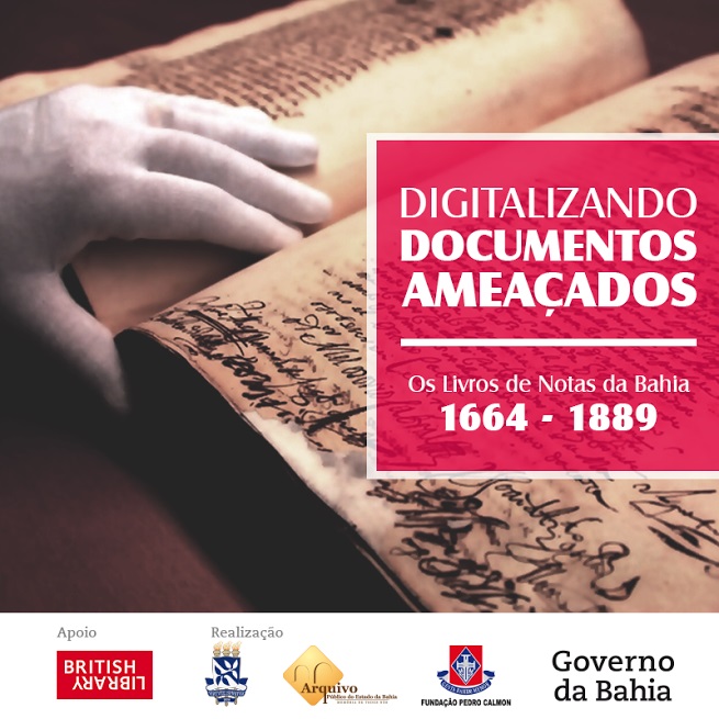 Cerca de 450 mil imagens de Livros de Notas, produzidas em mais de dois séculos - 1664 a 1889 – estão sendo digitalizadas numa parceria firmada entre a Fundação Pedro Calmon/Secretaria de Cultura do Estado da Bahia (FPC/SecultBA) - por meio do Arquivo Público do Estado da Bahia (APEB) - e o Programa de Pós-Graduação em História (PPGH) da Faculdade de Filosofia e Ciências Humanas (FFCH) da Universidade Federal da Bahia (UFBA). A parceria conta ainda com o apoio da Biblioteca Britânica, mediante o Endangered Archives Program (Programa Arquivos Ameaçados de Extinção).