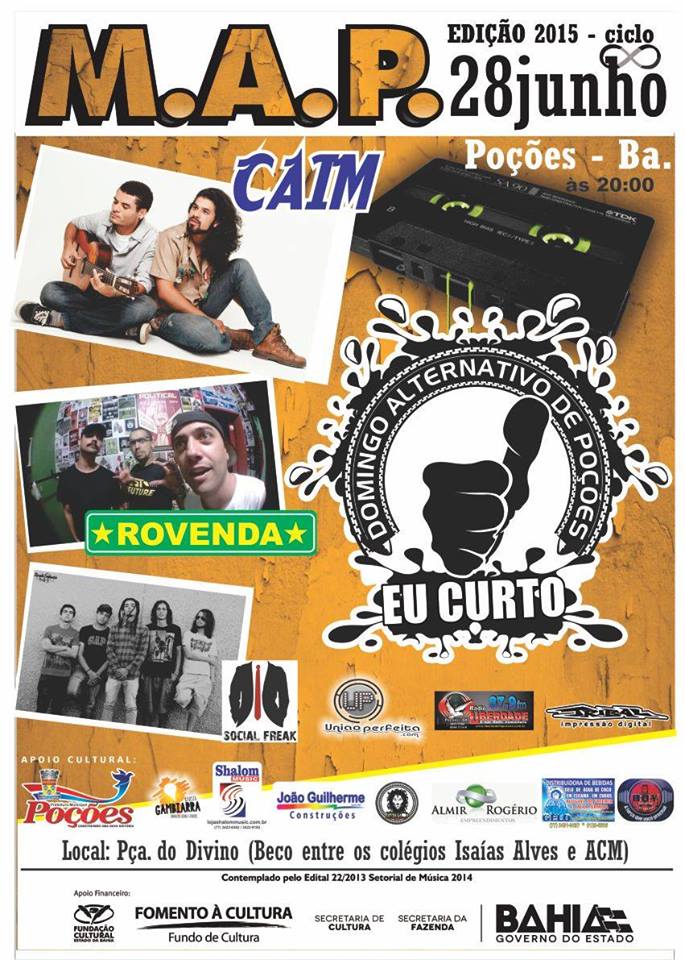 Já o power trio independente Rovenda, de São Paulo, trará o seu rock cheio de energia, pela primeira vez na cidade de Poções. Formado em 2003, o grupo possui dois álbuns e dois EPs, tendo circulado por vários estados, em festivais como o Grito Rock.