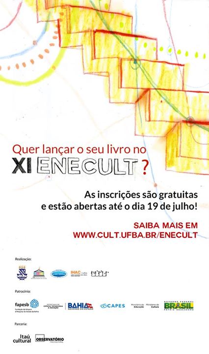 Estão abertas entre os dias 6 e 19 de julho as inscrições da seleção para lançamento de livros no XI Enecult – Encontro de Estudos Multidisciplinares em Cultura. O evento será realizado em 13 de agosto, como parte da programação do encontro – que acontece entre os dias 11 e 14, na Universidade Federal da Bahia (UFBA), em Salvador. Podem se inscrever gratuitamente os autores de todo o país e estrangeiros que publicaram livros científicos na área cultural a partir de 2014. O resultado da seleção será divulgado no dia 27 de julho no site do Enecult. Os autores interessados em participar devem enviar para o e-mail livro.enecult@gmail.com as seguintes informações: imagem da capa do livro; formato do livro; número do ISBN; editora; preço; e release. Os aprovados na seleção precisam entregar os livros para a comercialização até o dia 11 de agosto, aos cuidados da Editora da UFBA (Edufba), que também vai vender as publicações em seu stand durante os dias de evento. Como parte do processo de comercialização, a editora retém 30% do valor dos livros. O Enecult é o maior encontro internacional de estudos em cultura realizado no Brasil. A 11ª edição é realizada pela UFBA, por meio do Centro de Estudos Multidisciplinares em Cultura (CULT), Programa Multidisciplinar de Pós-Graduação em Cultura e Sociedade (Pós-Cultura) do Instituto de Humanidades, Artes e Ciências Professor Milton Santos (IHAC) e Faculdade de Comunicação. O evento conta com o patrocínio da Fapesb, Capes, Ministério da Educação e Ministério da Cultura, e com a parceria do Itaú Cultural e Observatório Itaú Cultural. Fonte: ENECULT