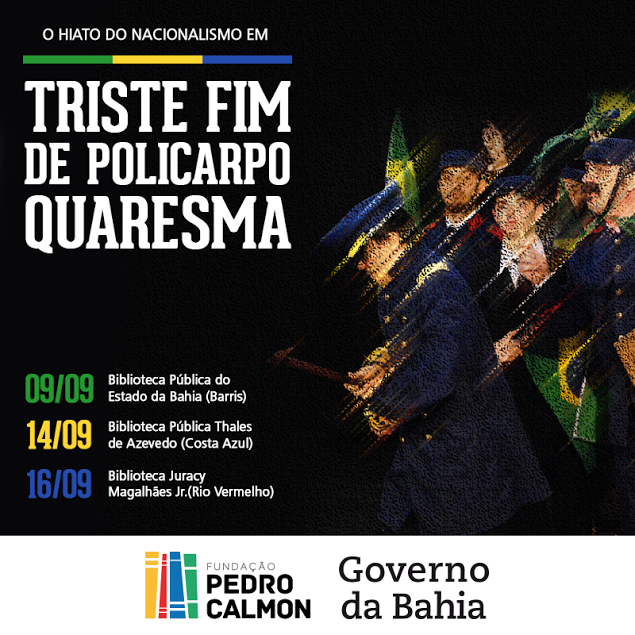 A Fundação Pedro Calmon/Secretaria de Cultura do Estado da Bahia (FPC/SecultBa), através do Sistema de Estadual de Bibliotecas Públicas (SEBP) promove nos dias 09, 14 e 16 de setembro, sempre das 9h às 12h, uma série de debates com o tema “O hiato do Nacionalismo em Triste Fim de Policarpo Quaresma”, de Lima Barreto. Os debates são uma homenagem ao centenário da obra e são abertos ao público.