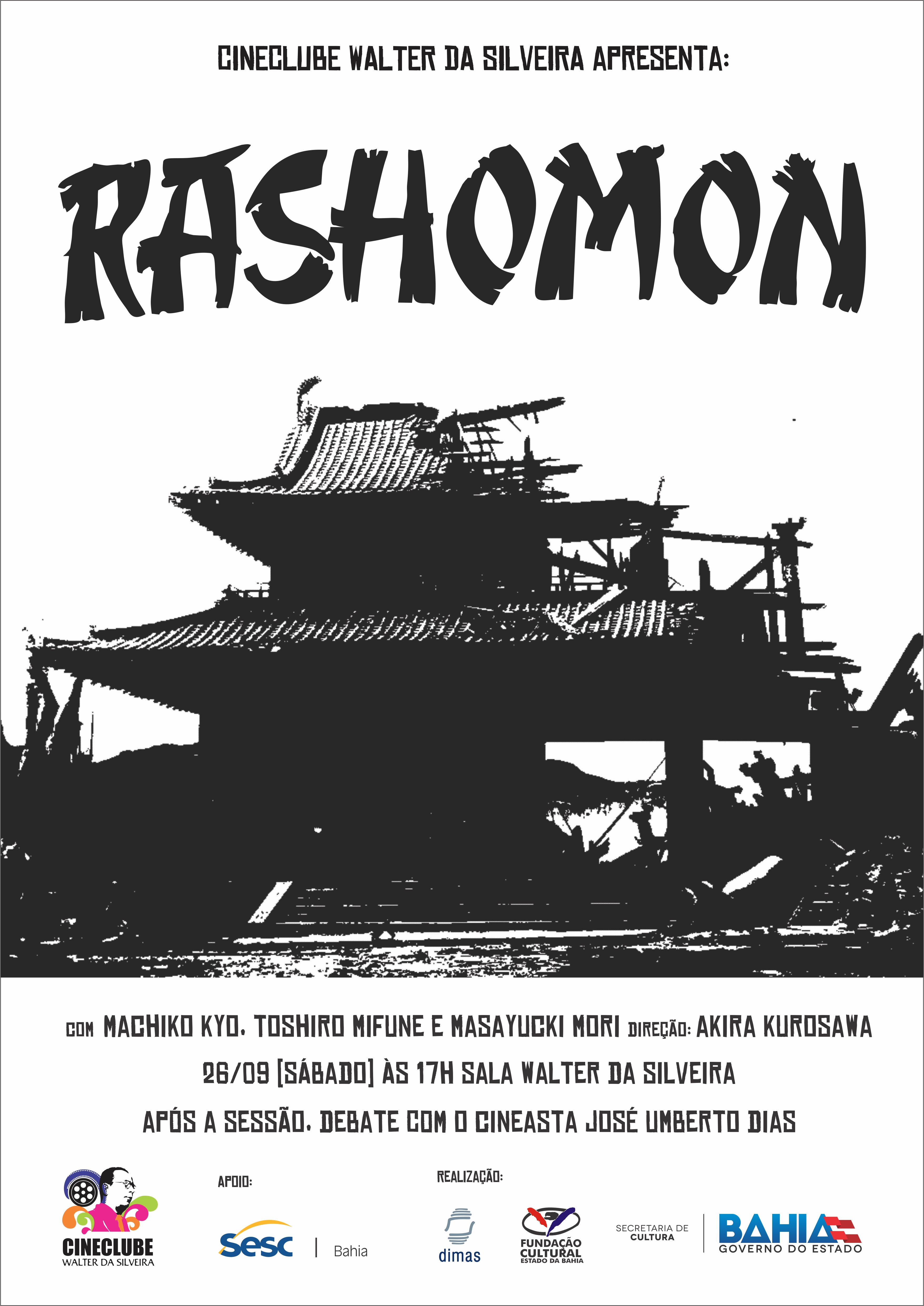 Um dos grandes clássicos da cinematografia mundial, “Rashomon”, de Akira Kurosawa, é a próxima atração do Cineclube Walter da Silveira. A sessão acontece em novo horário: sábado, dia 26, às 17h, e, como de costume, após a exibição, o público participa de um debate mediado pelo cineasta José Umberto. “Rashomon” foi lançado em 1950 e muitos apontam que o filme introduziu o cinema japonês no ocidente. Com uma estrutura narrativa não convencional, “Rashomon” descreve um crime sob os pontos de vista de quatro testemunhas que divergem entre si. As peças embaralhadas e as versões contraditórias dificultam o entendimento do que, de fato, aconteceu. Terceira sessão Essa é a terceira sessão do Cineclube Walter da Silveira. Na primeira, realizada em julho, foi exibido o filme “Pierrot Le Fou”, de Jean Luc Godard, com a participação do crítico Adalberto Meirelles. Já a segunda sessão, realizada em agosto, apresentou “Barton Fink: Delírios de Hollywood”, dos irmãos Coen, com debate mediado por integrantes dos coletivos Cual e Êpa Filmes. Lançado na ocasião do centenário de Walter da Silveira, o cineclube é uma iniciativa da Diretoria de Audiovisual da Fundação Cultural do Estado da Bahia (Dimas/Funceb) e celebra o legado do crítico, ensaísta, cineclubista e formador de uma geração de cineastas e cinéfilos baianos. Serviço O que? Exibição de “Rashomon” no Cineclube Walter da Silveira Quando? Dia 26 de setembro, sábado, às 17h Onde? Sala Walter da Silveira, R. General Labatut, nº 27, subsolo, Complexo Cultural dos Barris Quanto? Gratuito