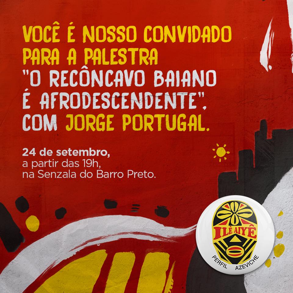 19h - Palestra: O Recôncavo Baiano é Afrodescendente, com o professor e atual Secretário da Cultura Jorge Portugal