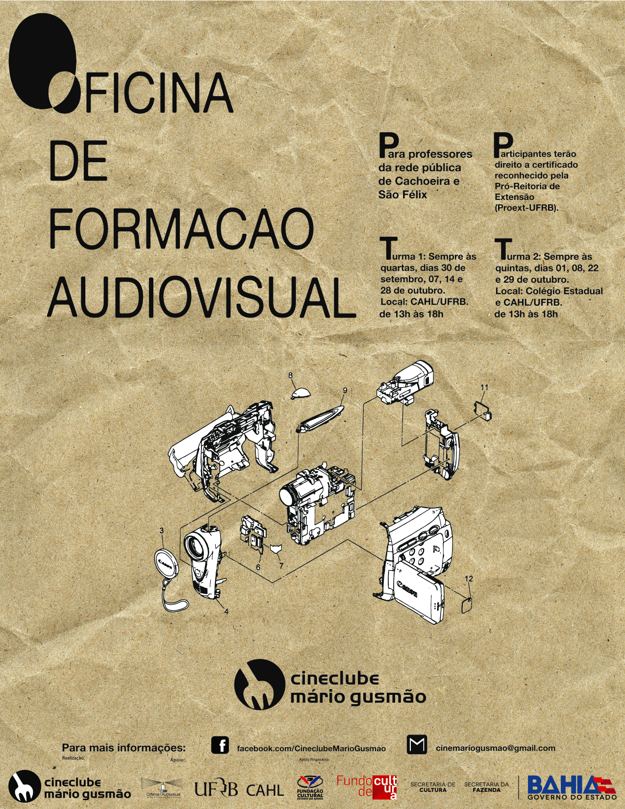 Entre setembro e outubro, o Cineclube Mário Gusmão realiza a Oficina de Formação Audiovisual para professores da rede pública de Cachoeira e São Félix. Serão duas turmas e os participantes terão direito a certificado reconhecido pela Pró-Reitoria de Extensão (Proext-UFRB).