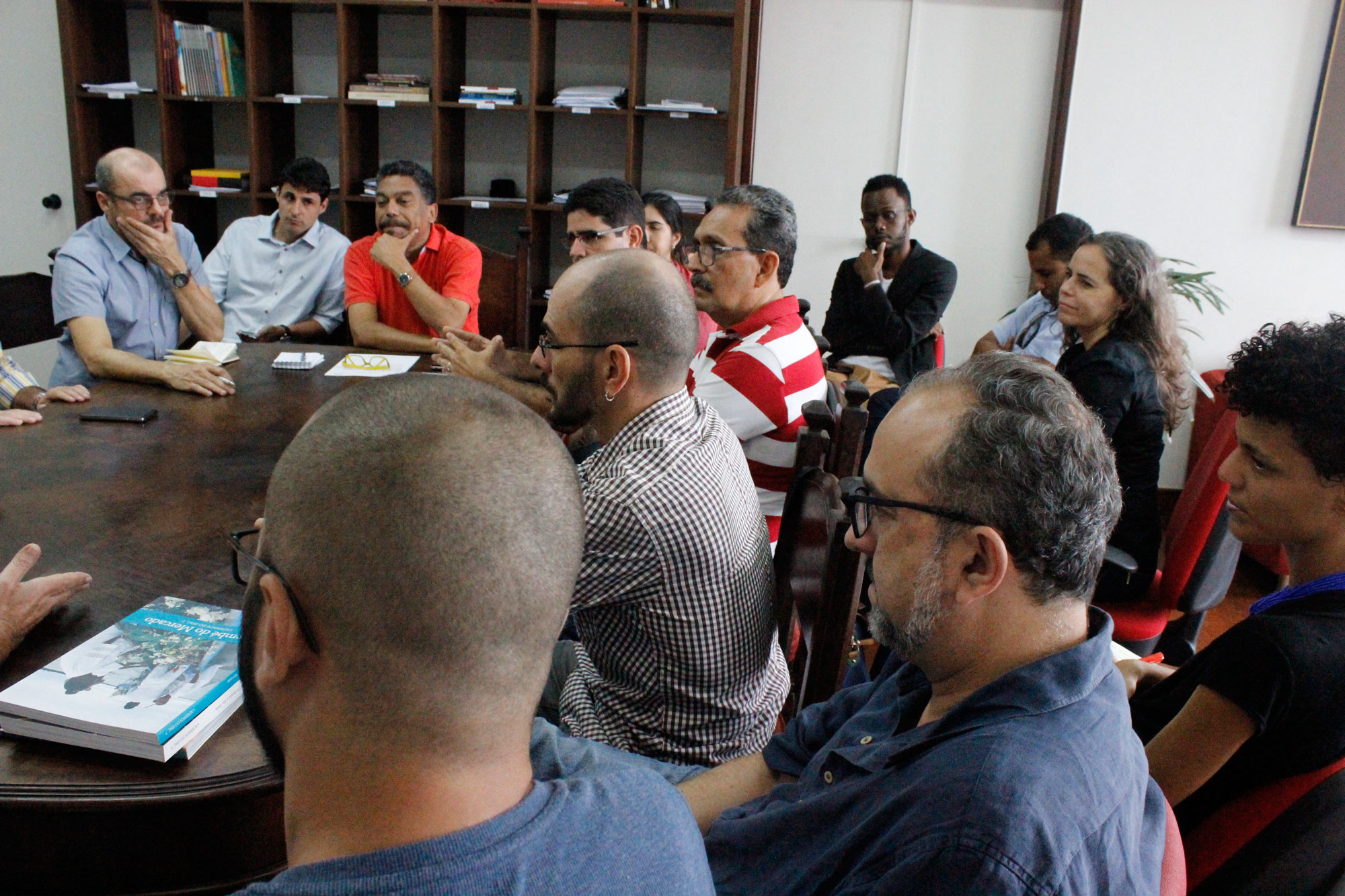 A criação de um Circuito Alternativo de Exibição de Filmes baianos e nacionais no Estado e a continuidade do diálogo sobre a implantação da Bahia Filmes foram alguns dos temas discutidos hoje pelo secretário de Cultura do Estado da Bahia, Jorge Portugal, em reunião com 15 integrantes da Associação de Produtores e Cineastas da Bahia – APC Bahia. O gestor da Diretoria de Audiovisual (DIMAS) da Fundação Cultural do Estado da Bahia, Bertrand Duarte, e o superintendente de Promoção Cultural da Bahia, Alexandre Simões, também participaram do encontro realizado no Palácio Rio Branco.