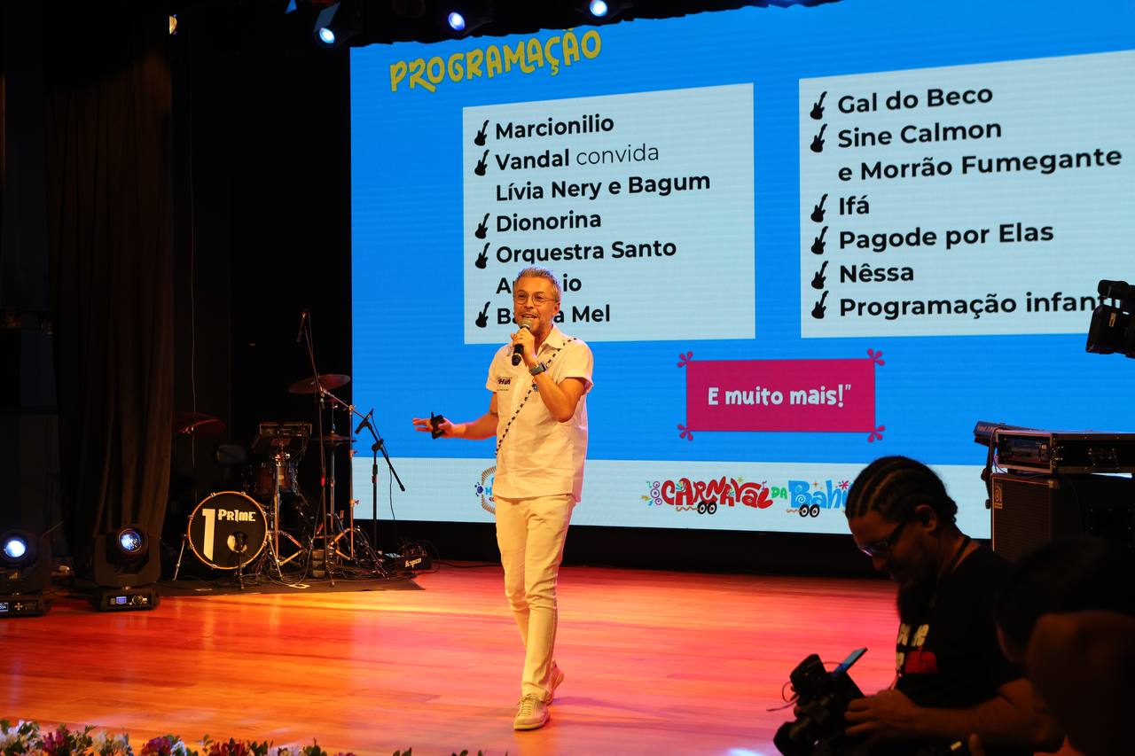 O Governo do Estado anunciou, nesta sexta-feira (14), uma série de ações, serviços e atrações gratuitas para o Carnaval da Bahia em 2025. O governador Jerônimo Rodrigues e o vice-governador Geraldo Júnior estiveram no evento, que aconteceu no Cineteatro 2 de Julho, na sede do Irdeb, no bairro da Federação, em Salvador.