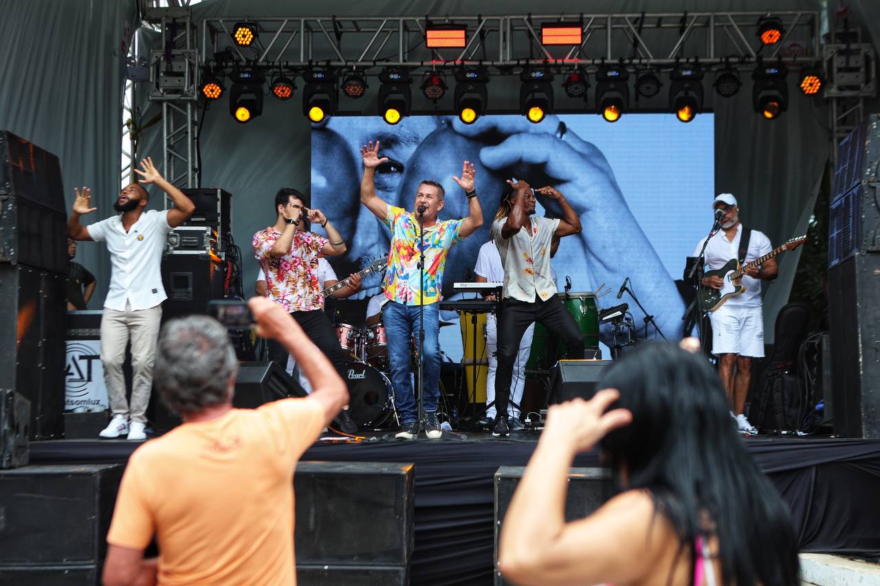 O som envolvente do cantor Jorge Zárath abriu a programação do Palco Axé Music 40 Anos, na Praça das Artes, no Pelourinho, na tarde desta quinta-feira (27). A chuva, que caiu no início da tarde, não desanimou o público, que cantou e dançou embalado pelo repertório do cantor, considerado um dos grandes nomes da música baiana.