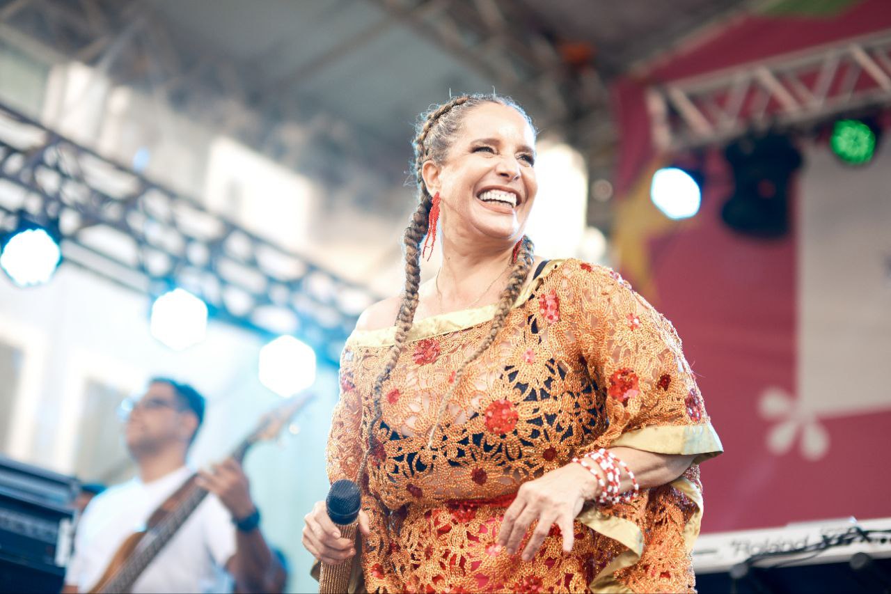 Com clássicos do Axé Music, Sarajane embala público de todas as idades no Largo Quincas Berro D'Água
