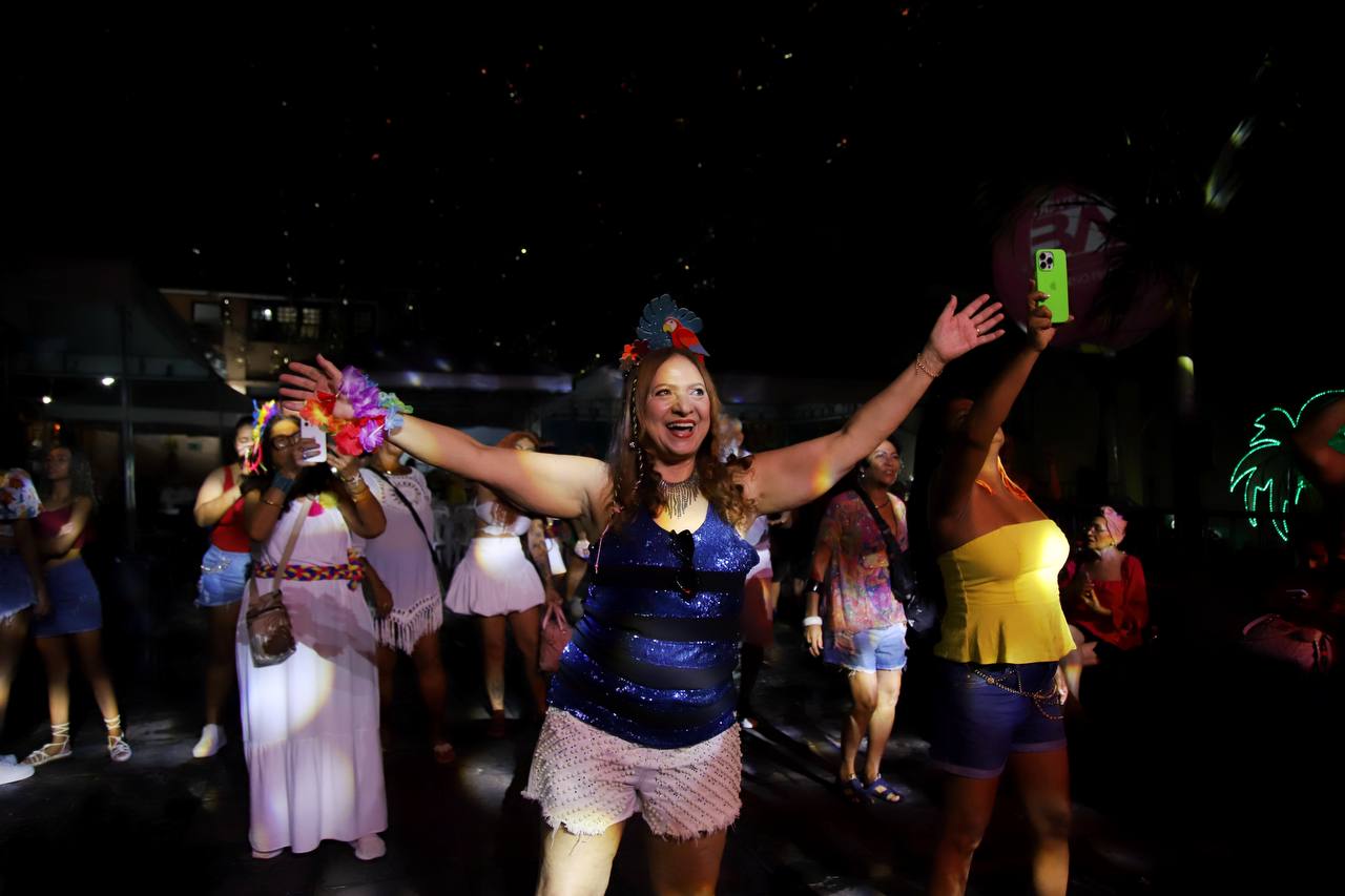 Daniel Alves Menezes, 71, também estava acompanhado da esposa, Elodia Medrado, 65. O casal curtiu o repertório recheado de hits carnavalescos baianos, como “Eu Sou o Carnaval” e “Chame Gente”, de Moraes Moreira, e “Eu Também Quero Beijar”, de Pepeu Gomes.