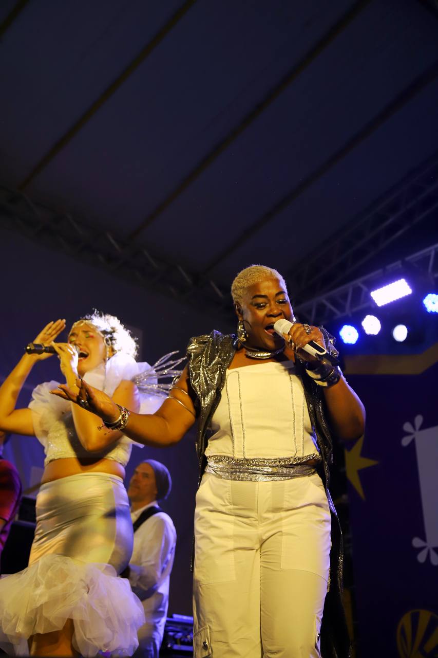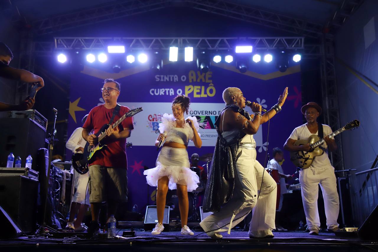 Graça Onasilê, vocalista do Ilê Aiyê, e Nina Sol, expoente musicista soteropolitana, apresentaram-se no palco da Praça Pedro Archanjo, no Pelourinho, nesta sexta-feira (28). As artistas, de diferentes gerações da música baiana, uniram-se para apresentar o “Folia Delas”, projeto que conta com o apoio do Governo do Estado e da Bahiagás.