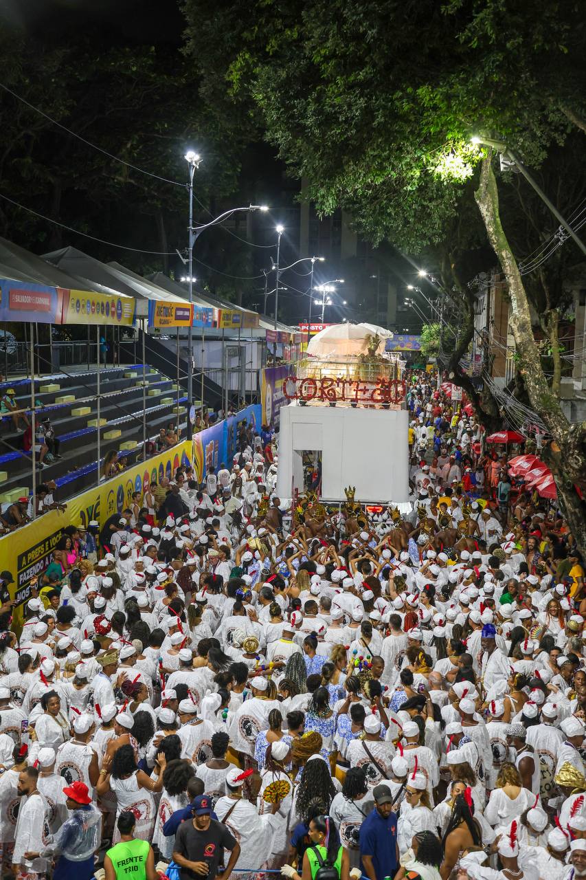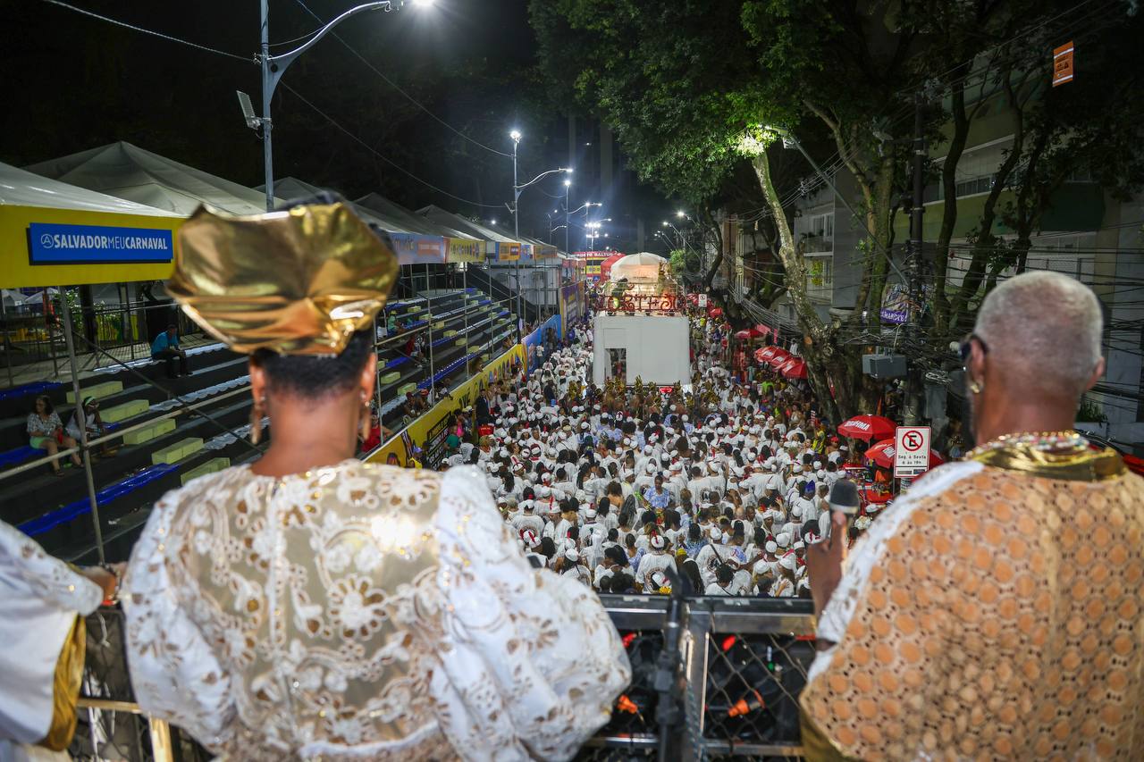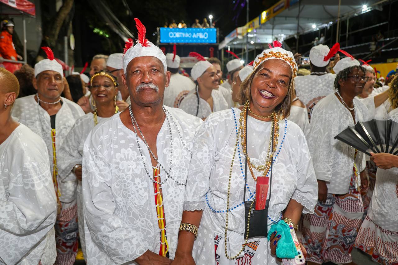 “Negro é a raiz da liberdade.” Foi assim que o Cortejo Afro, o elegantemente sofisticado, deu início ao desfile no Circuito Osmar com o tema “Joias de Crioula - Centenário de Mãe Santinha de Oyá”, no fim da noite de sexta-feira (28), segundo dia oficial do Carnaval. Contemplado pelo programa Ouro Negro, promovido pelo Governo do Estado, por meio da Secretaria de Cultura do Estado (SecultBA), o bloco valorizou a tecnologia afro-brasileira e a história da Ialorixá do terreiro Ilê Asé Oyá.