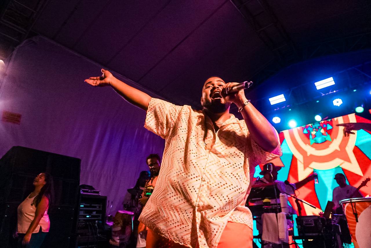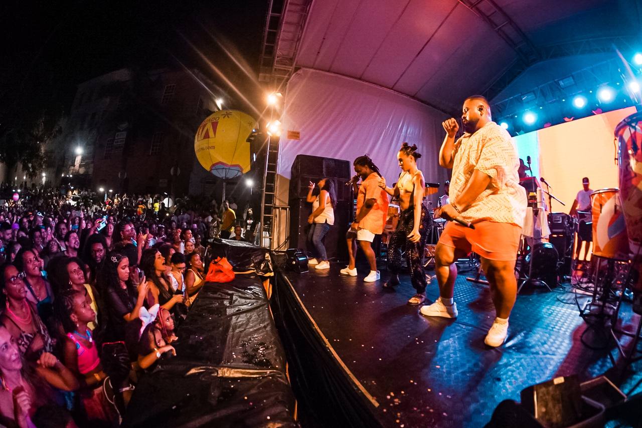 A banda Filhos de Jorge lotou a Praça das Artes, no Pelourinho, neste sábado (01), na terceira noite do Carnaval da Bahia 2025. O grupo liderado pelos vocalistas Arthur Ramos e Dan Vasco, e o tecladista Gileno Gomes, se apresentou no Palco Axé Music 40 Anos e recebeu centenas de fãs apaixonados pela levada dançante do movimento. O espaço, que atingiu sua capacidade máxima, precisou interromper a entrada para conter o fluxo de pessoas.