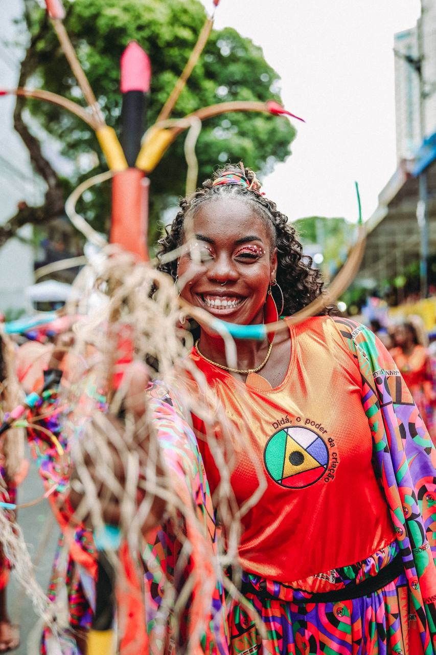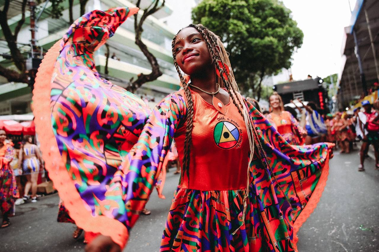 Com danças expressivas e trajes majestosos, as mulheres da Didá desfilaram com elegância e atitude, mostrando que o Carnaval também é um espaço de luta e celebração. Fundada em 1993 por Neguinho do Samba, criador do samba-reggae, a banda Didá surgiu para incluir mulheres na percussão e combater o racismo.