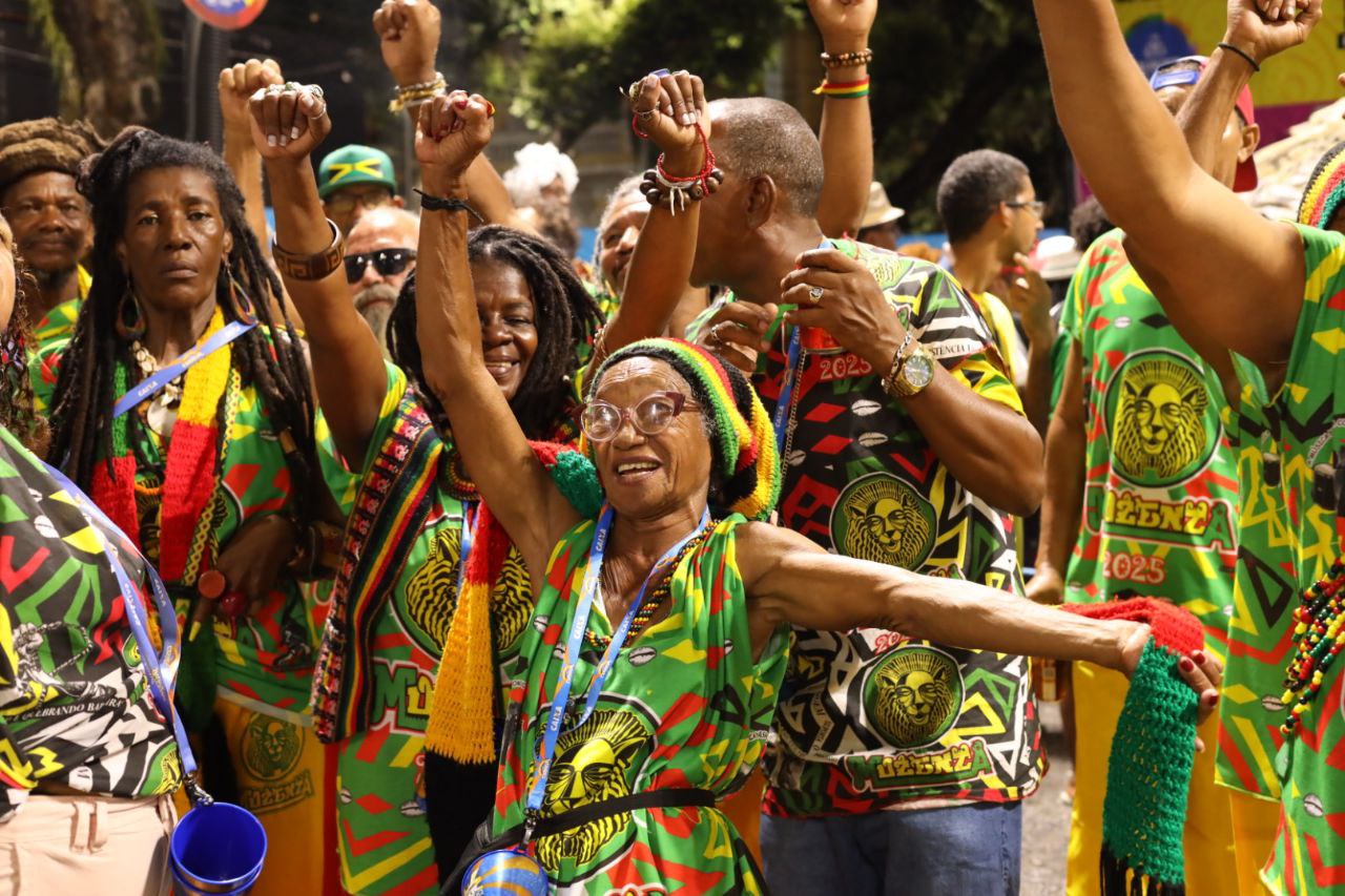 Com alas de fantasias deslumbrantes, coloridas e sustentáveis, o poder cultural, social e político do bloco Muzenza tomou conta da avenida com o tema “Muzenza, uma história de resistência”, no fim da noite de sábado (1º). A agremiação, contemplada pelo programa Ouro Negro, promovido pelo governo do estado por meio da Secretaria de Cultura da Bahia (SecultBA), ressaltou a influência da cultura afro-jamaicana na música baiana.