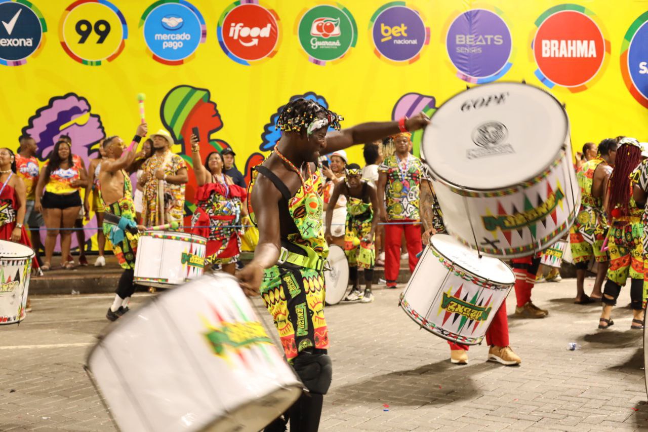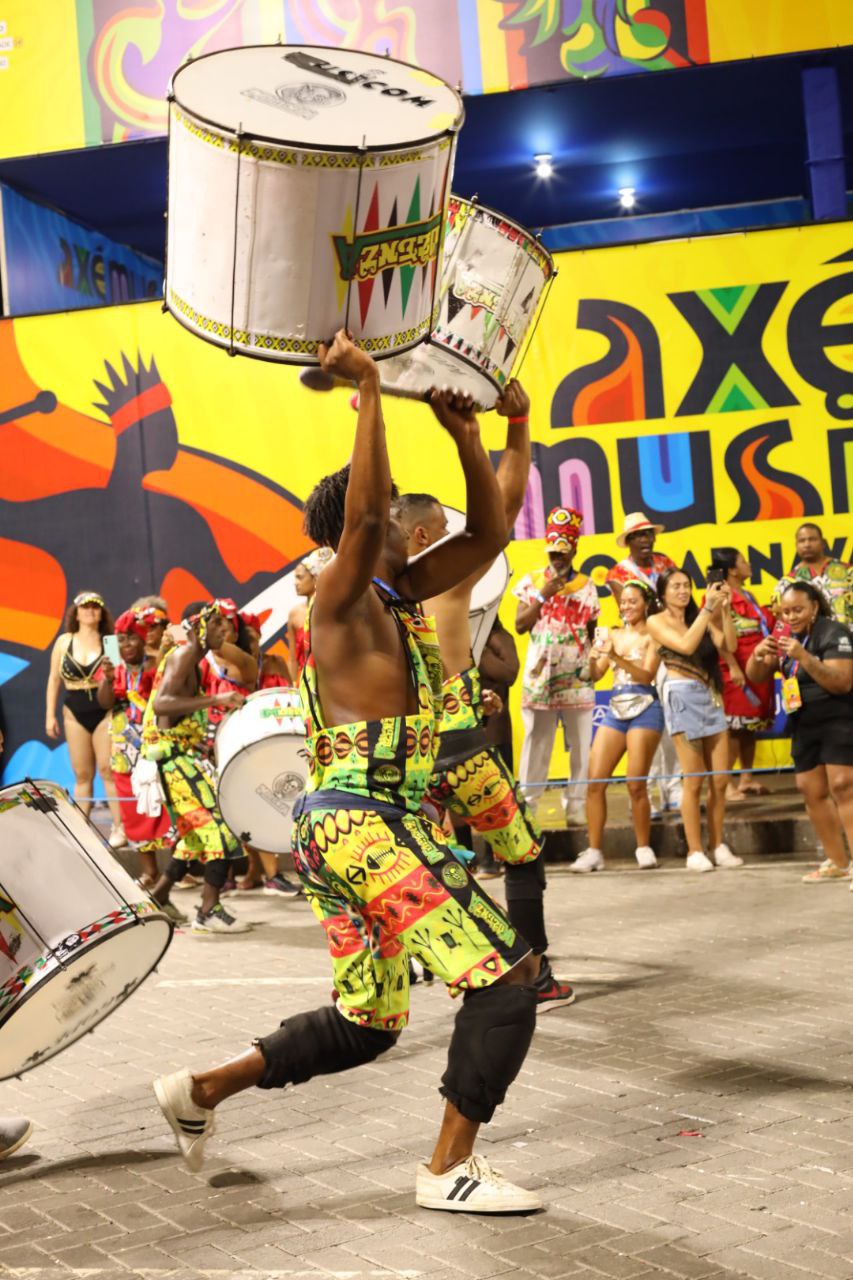 As ruas do circuito Osmar receberam a beleza das criações luxuosas, além da banda, com sua percussão potente, envolvente e ancestral. Nas letras das canções, ecoaram mensagens de empoderamento e exaltação da Jamaica.