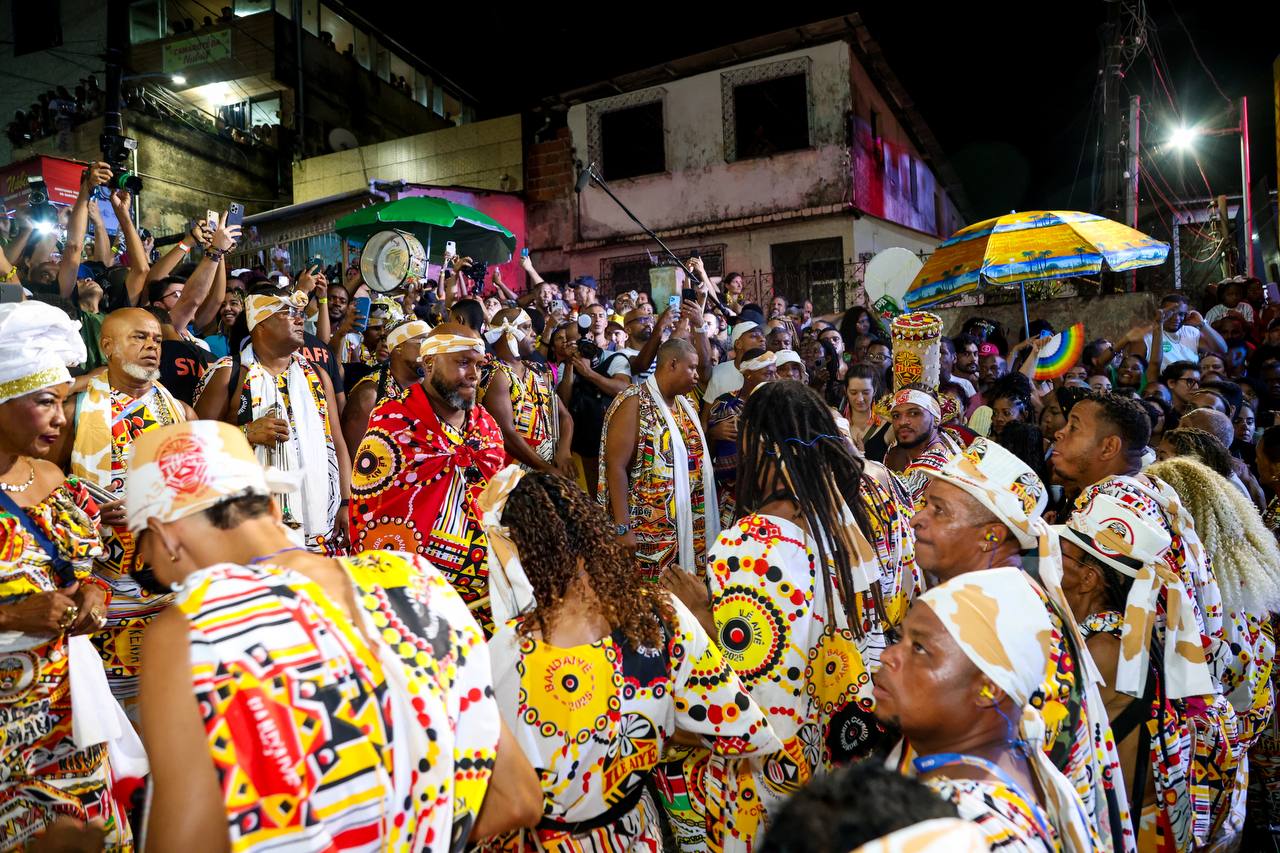 O cortejo seguiu para a Senzala do Barro Preto e, depois, tomou as ruas da Liberdade, bairro soteropolitano reconhecido como território de resistência. O local foi ocupado por uma multidão majoritariamente preta de diversas faixas etárias, todos no mesmo ritmo, entoando os cânticos de exaltação à cultura e religiosidade negra.