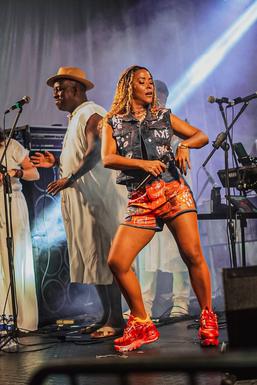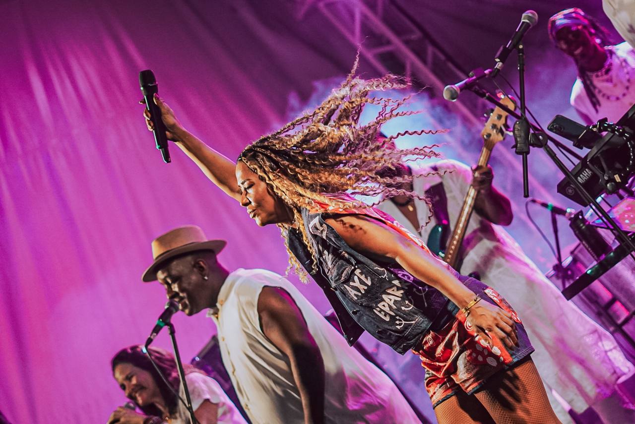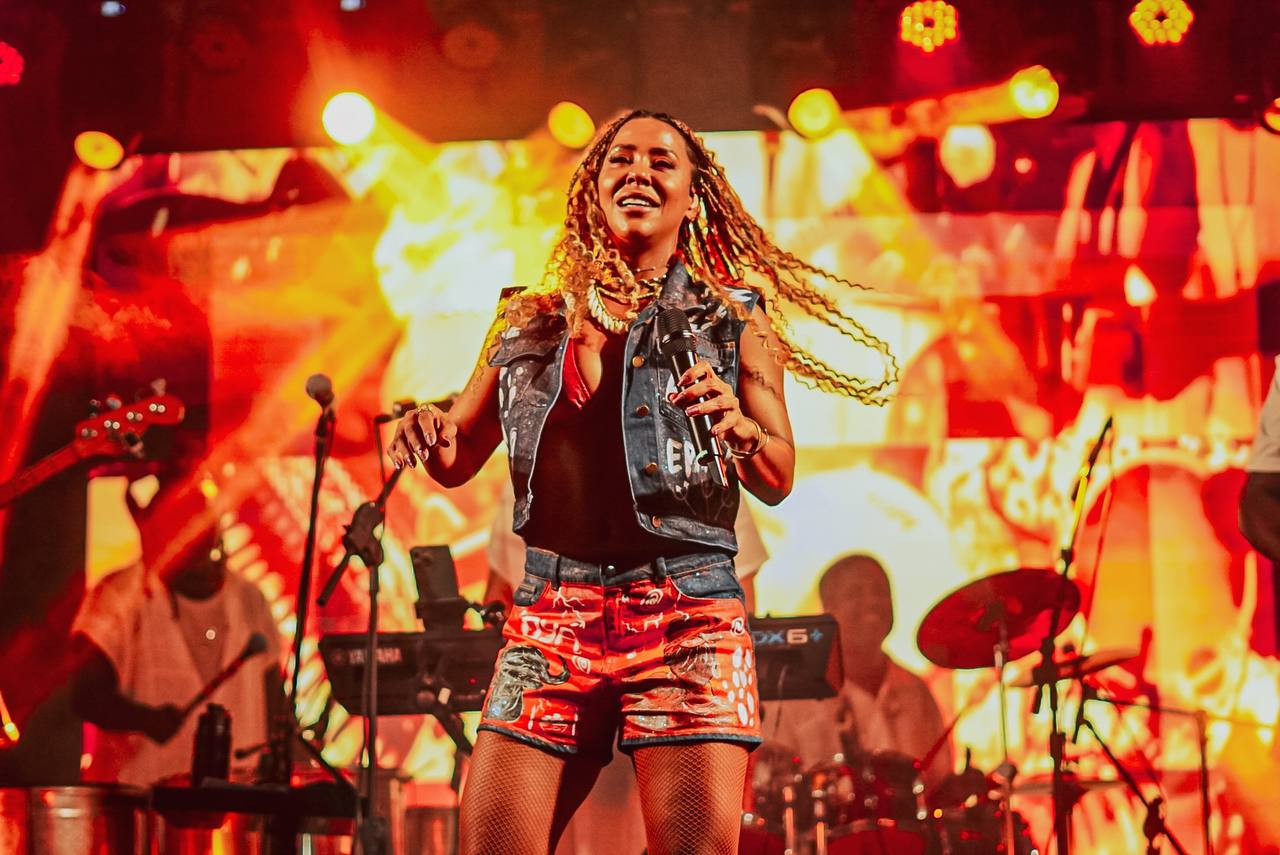 Na sequência, a cantora emendou “Baianidade Nagô” e outros sucessos como “Emoriô”, “Banho de Folhas”, “Faraó”, “E Lá vou eu” e “Ladeira do Pelô”. Com um público engajado, cantando e dançando com fervor do início ao fim, o show também resgatou outros hinos do Axé Music como Deusa do Amor.
