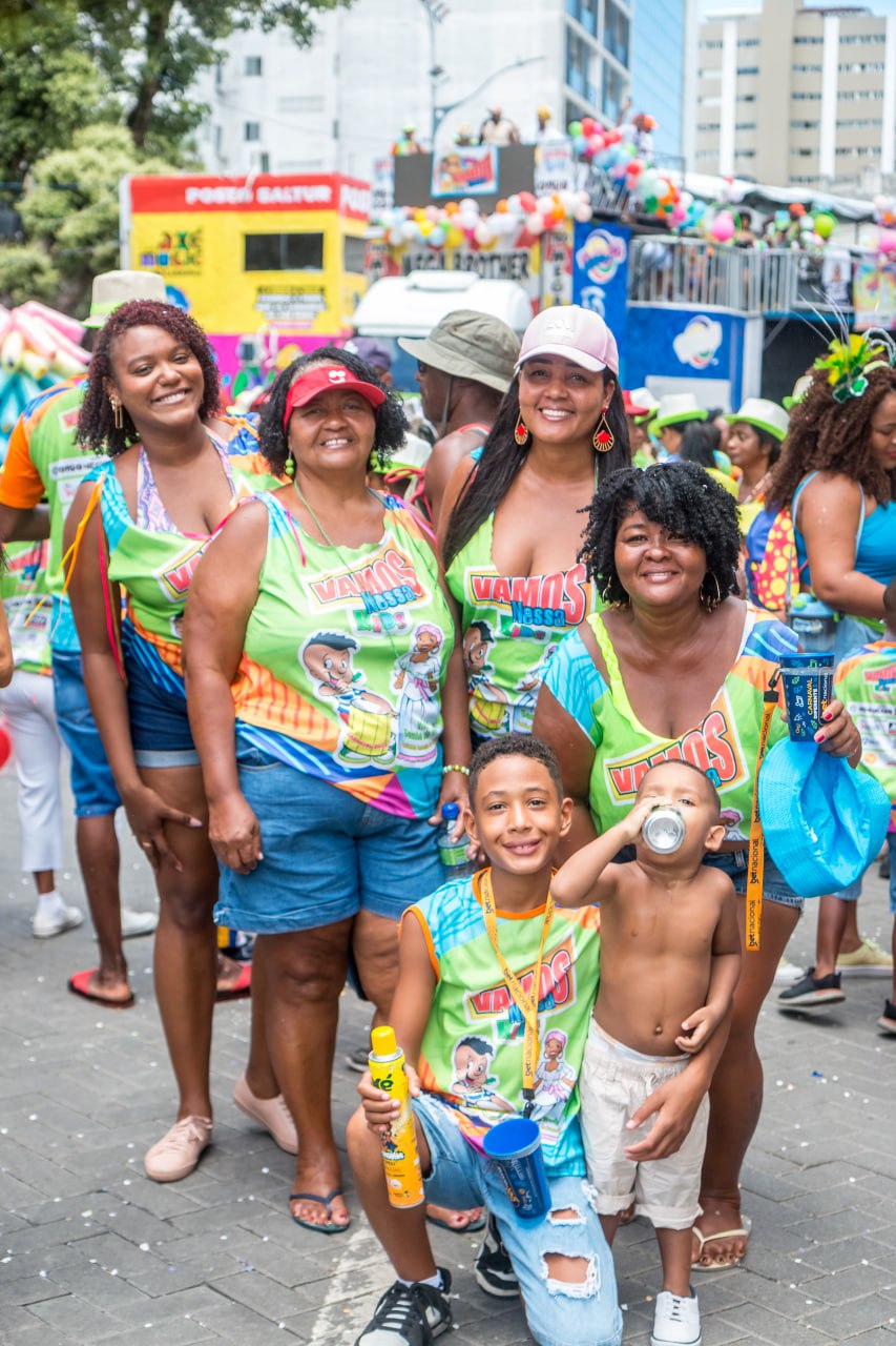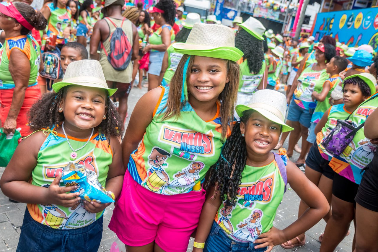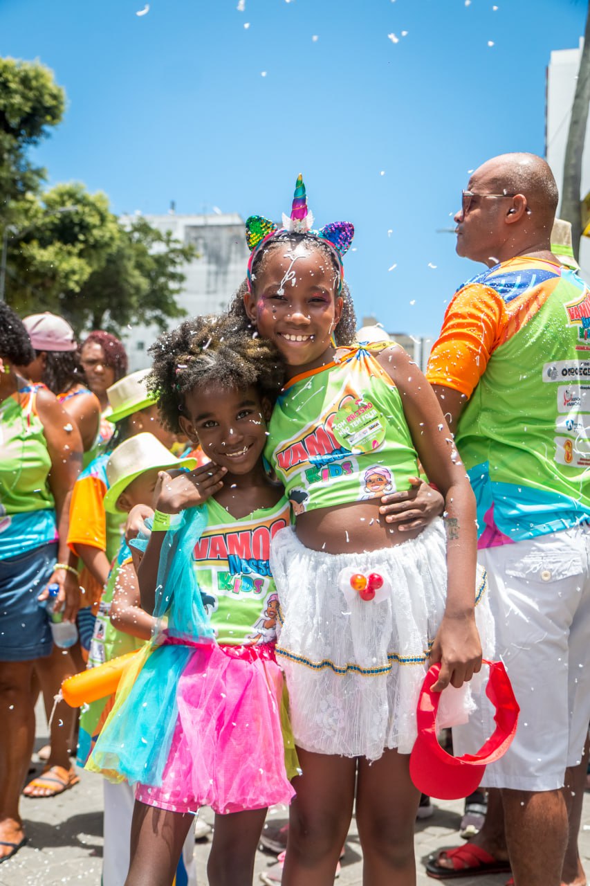 Em uma manhã de sol, no circuito Osmar, no último dia da maior festa de rua do mundo, um mar de cores tomou conta da avenida, onde as crianças esbanjaram alegria e disposição durante o desfile do bloco Vamos Nessa Kids. A festa foi em família, reunindo avós, pais, filhos e netos, garantindo diversão do início ao fim. A ala das baianas foi composta por três gerações de crianças e adultos. Não faltou banho de espuma.