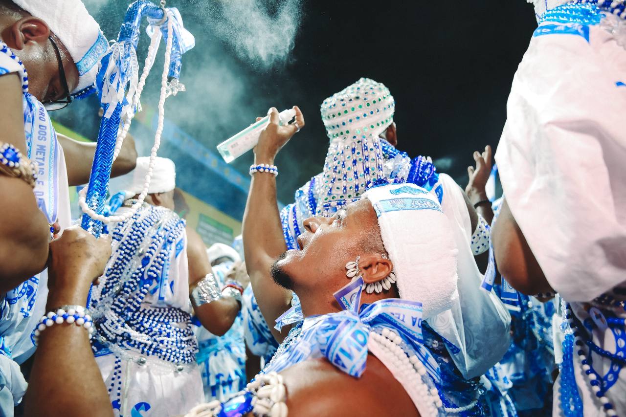 Assim, foliões da pipoca veem o cortejo passar. Este ano, o tema “Ogum, senhor do ferro, dos metais e da tecnologia” homenageia o orixá que simboliza força, resistência e inovação, com arte assinada por J. Cunha. Junior Pakapym, responsável pelo figurino do ano passado, que celebrou os 75 anos do afoxé, falou sobre a emoção e a responsabilidade desse compromisso.