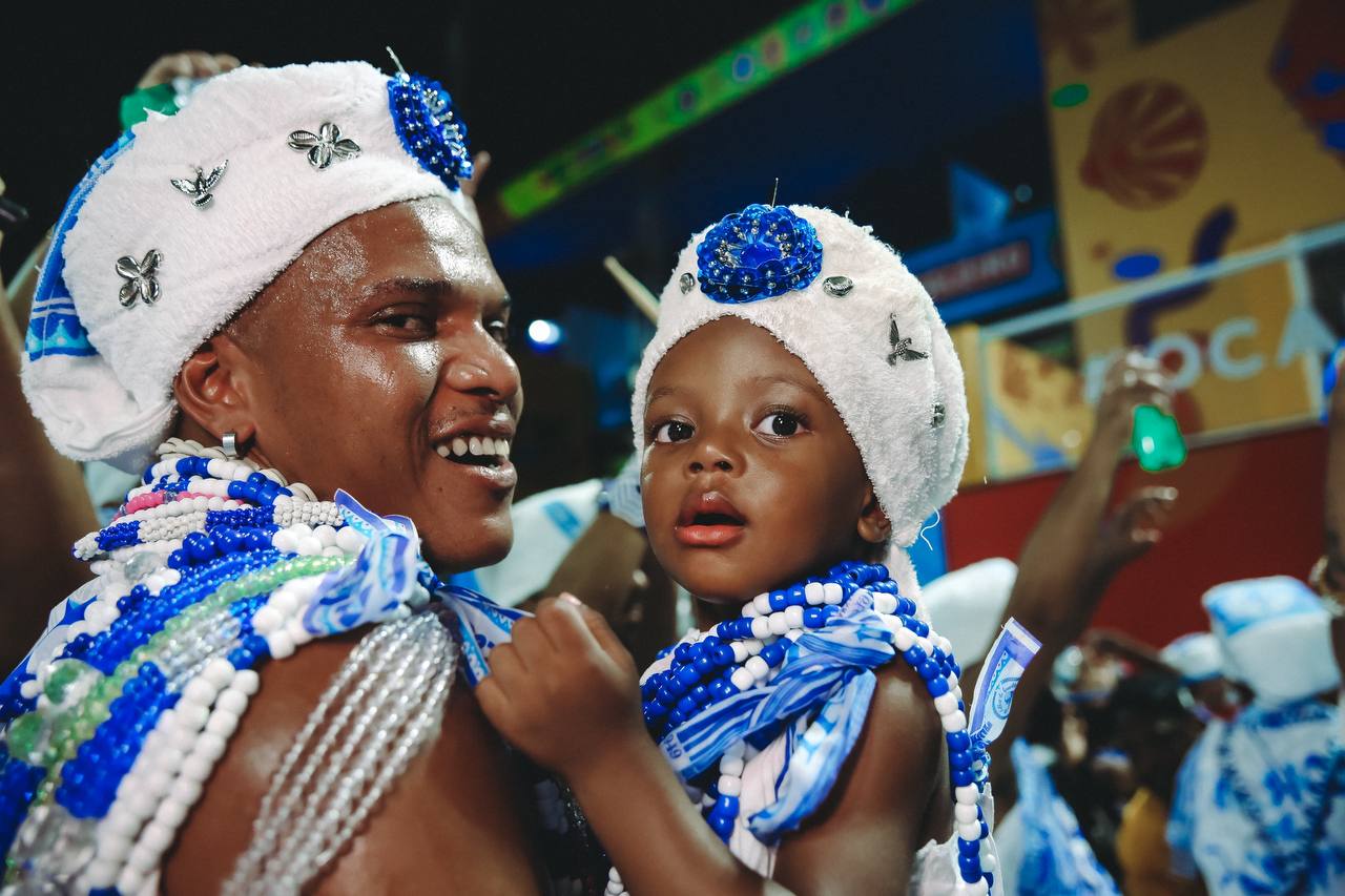 Matheus Silva, de 24 anos, que curte o bloco há sete anos, apresentou o Filhos de Gandhy ao seu filho, Lorenzo Silva, de 4 anos. “O sentimento é de sonho realizado, ter meu filho aqui comigo, curtindo com os Filhos de Gandhy”, contou, emocionado. A paixão do pequeno Lorenzo, que dançava durante todo o trajeto, começou antes mesmo de ir às ruas com o afoxé. “Ele gosta muito. Eu colocava as músicas em casa, e ele dançava”, concluiu o associado, enquanto o trio do afoxé desfilava pela passarela Nelson Maleiro, no terceiro dia de desfile do bloco e último dia de carnaval.