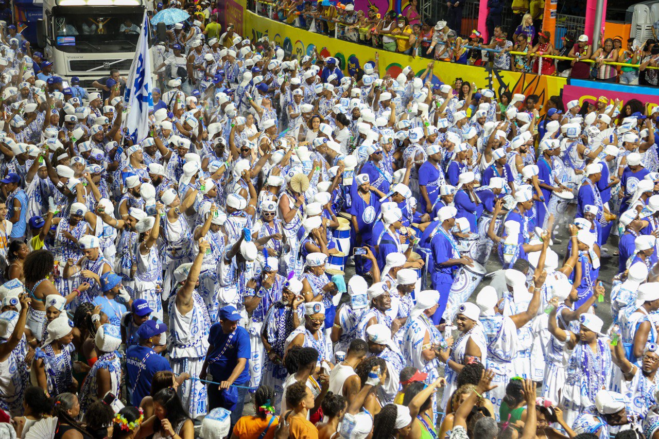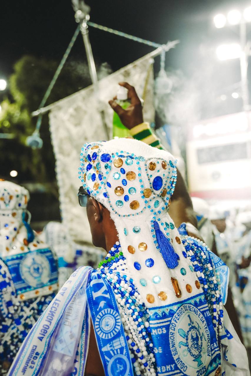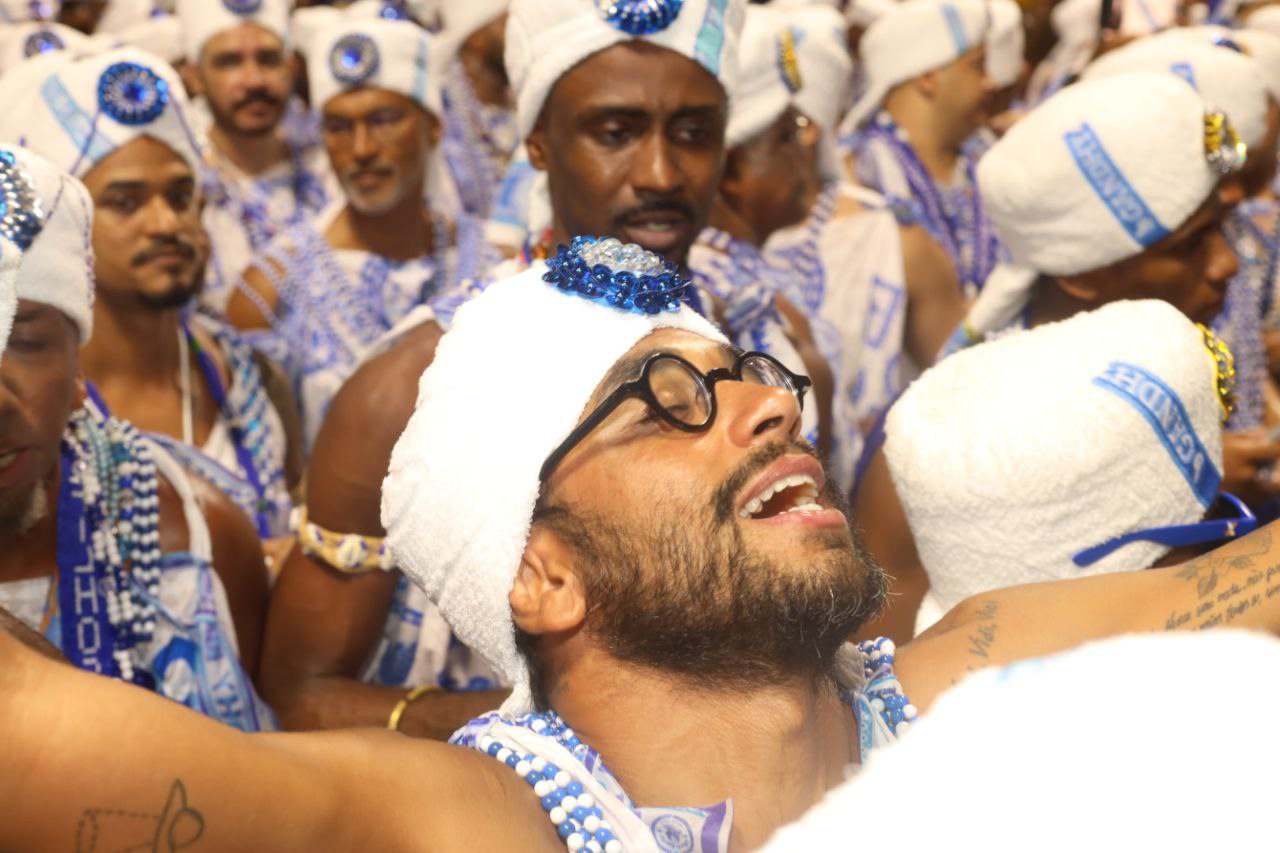 No afoxé Filhos de Gandhy, a tradição é viva e passada de geração para geração. Crianças vestiam o manto branco e azul, acompanhadas de seus pais, dançando Ijexá, em um ambiente de respeito e celebração aos orixás Oxalá e Ogum. O tapete branco da paz levou o aroma da alfazema do Pelourinho — na sede do bloco — até o Campo Grande, ao som do toque do agogô.