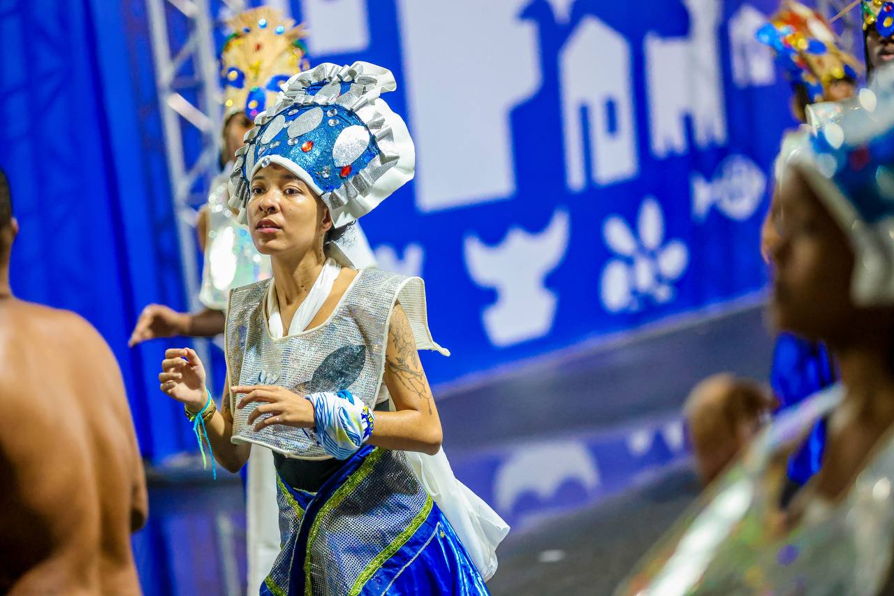 Além de reverenciar Ossanha com canções compostas por dona Valdete, o desfile teve um toque ainda mais especial: todas as roupas foram produzidas por integrantes do próprio grupo, com referências africanas. “Ensaiamos por mais de seis meses e produzimos”, contou, orgulhosa, Wemilly Lima, filha de Valdete e atual presidente do bloco, dando continuidade a essa história de herança e resistência passada de mãe para filha.