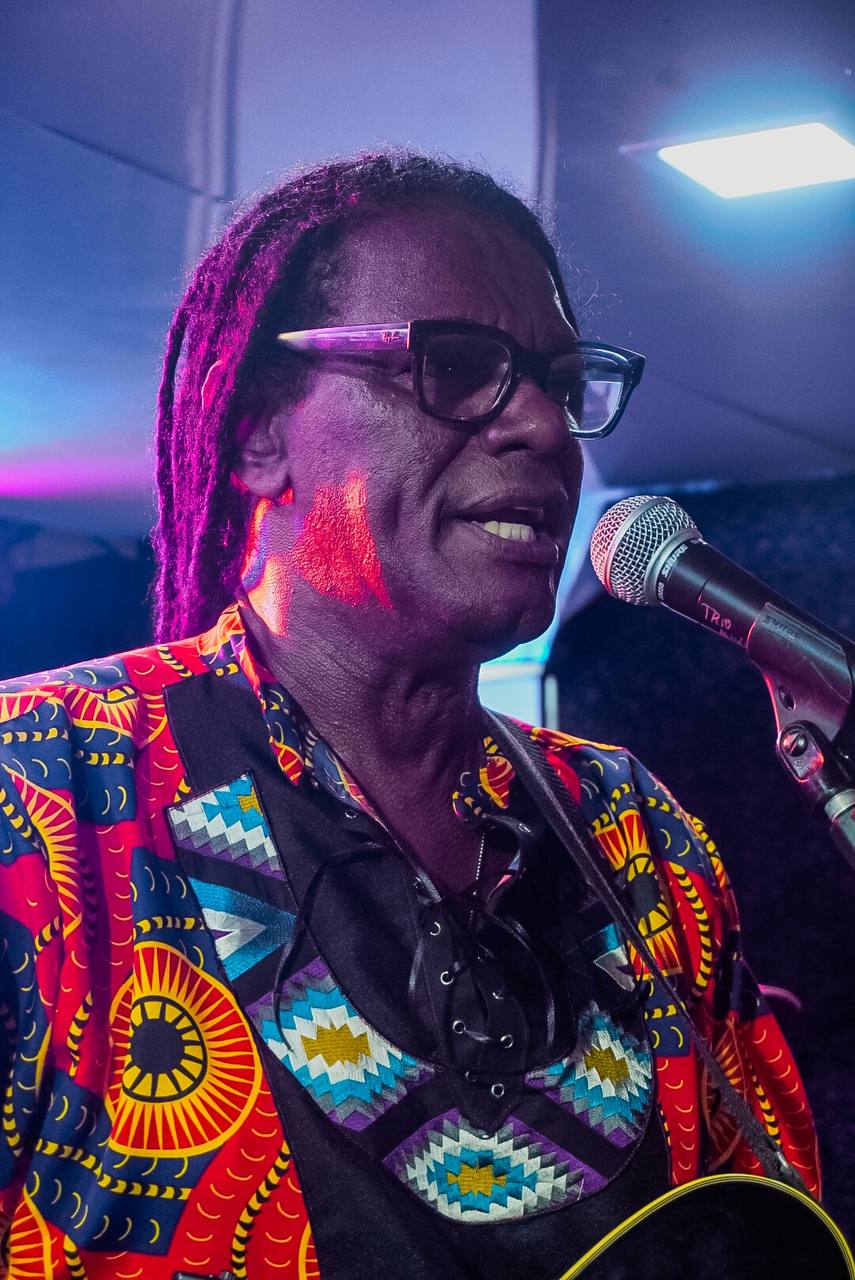 Batizado como Gilson Souza Santana, 62 anos, Gilsam é formado em pedagogia e tem uma longa trajetória ligada à cultura popular da cidade. Ao chegar ao palco, ele prestou homenagem ao multiartista Bel da Bonita, que faleceu recentemente e dá nome ao espaço dedicado aos músicos locais.