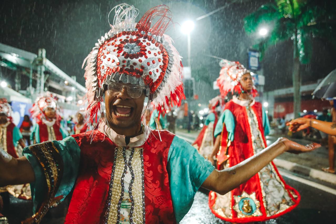 A estrutura da escola, com suas alas variadas - como as baianas, passistas, mestre-sala comissão de frente, porta-bandeira e rainha de bateria - encantou quem acompanhava o desfile. Cada figura tem papel essencial para dar forma ao espetáculo, como pontua o dançarino Davi Maia, 29, integrante há mais de 10 anos.