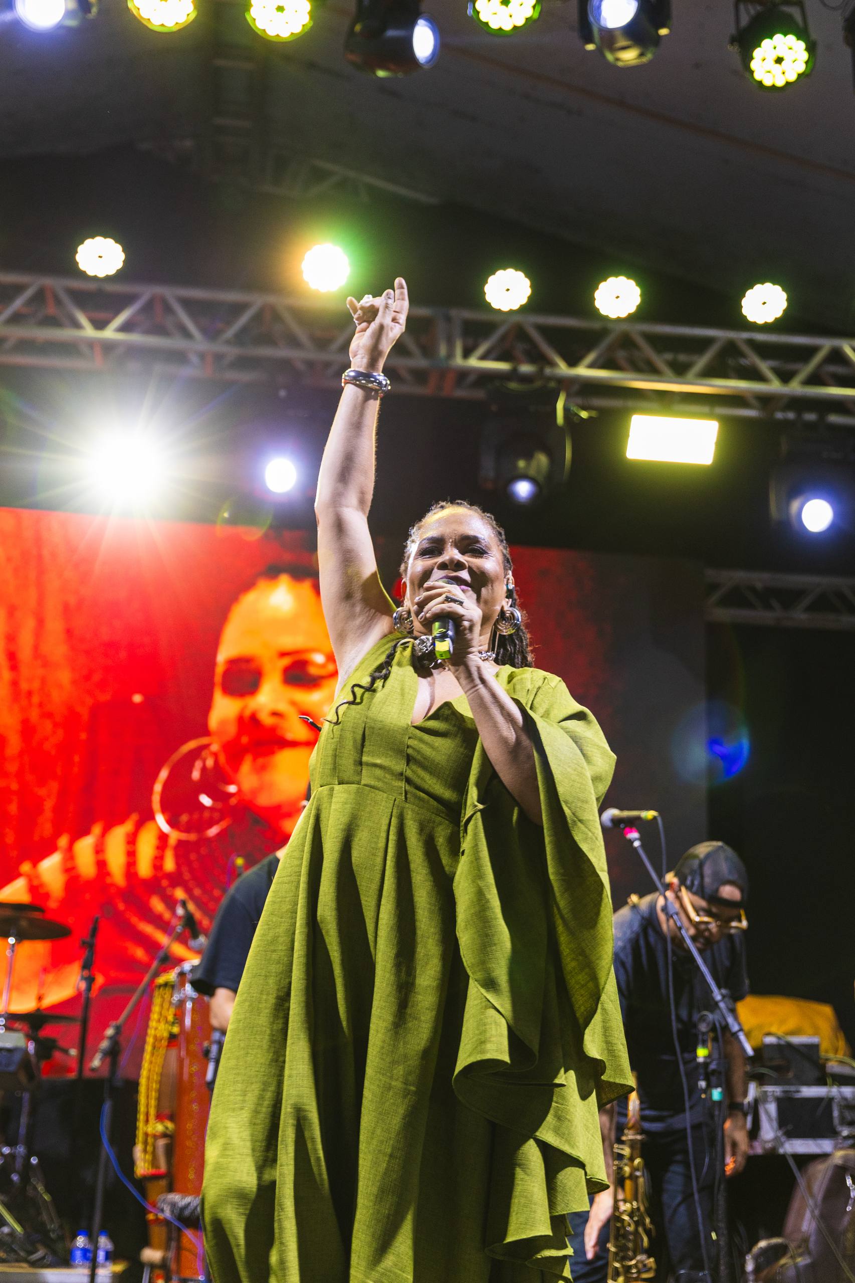 Uma das vozes mais reconhecidas da Axé Music, Márcia Short abriu a noite com sua presença marcante. Integrante da Banda Mel e dona de uma trajetória que atravessa carnavais, trios elétricos e projetos de celebração à música afro-baiana, Márcia trouxe ao palco um repertório que passeou entre samba-reggae e MPB, reafirmando o peso histórico da música produzida na Bahia.
