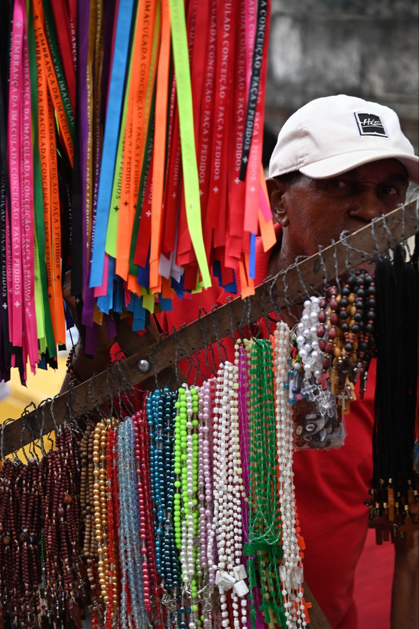FÉ NAS RUAS DO CENTRO HISTÓRICO - Depois da missa, uma procissão percorreu as ruas Gregório de Mattos, João de Deus, Terreiro de Jesus, Praça da Sé e Ladeira da Praça. Na Barroquinha, o cortejo fez a tradicional parada no Corpo de Bombeiros para homenagear a corporação. Em seguida foi pela Baixa dos Sapateiros, Rua Padre Agostinho e retornou ao Pelourinho, encerrando na Igreja do Rosário dos Pretos.