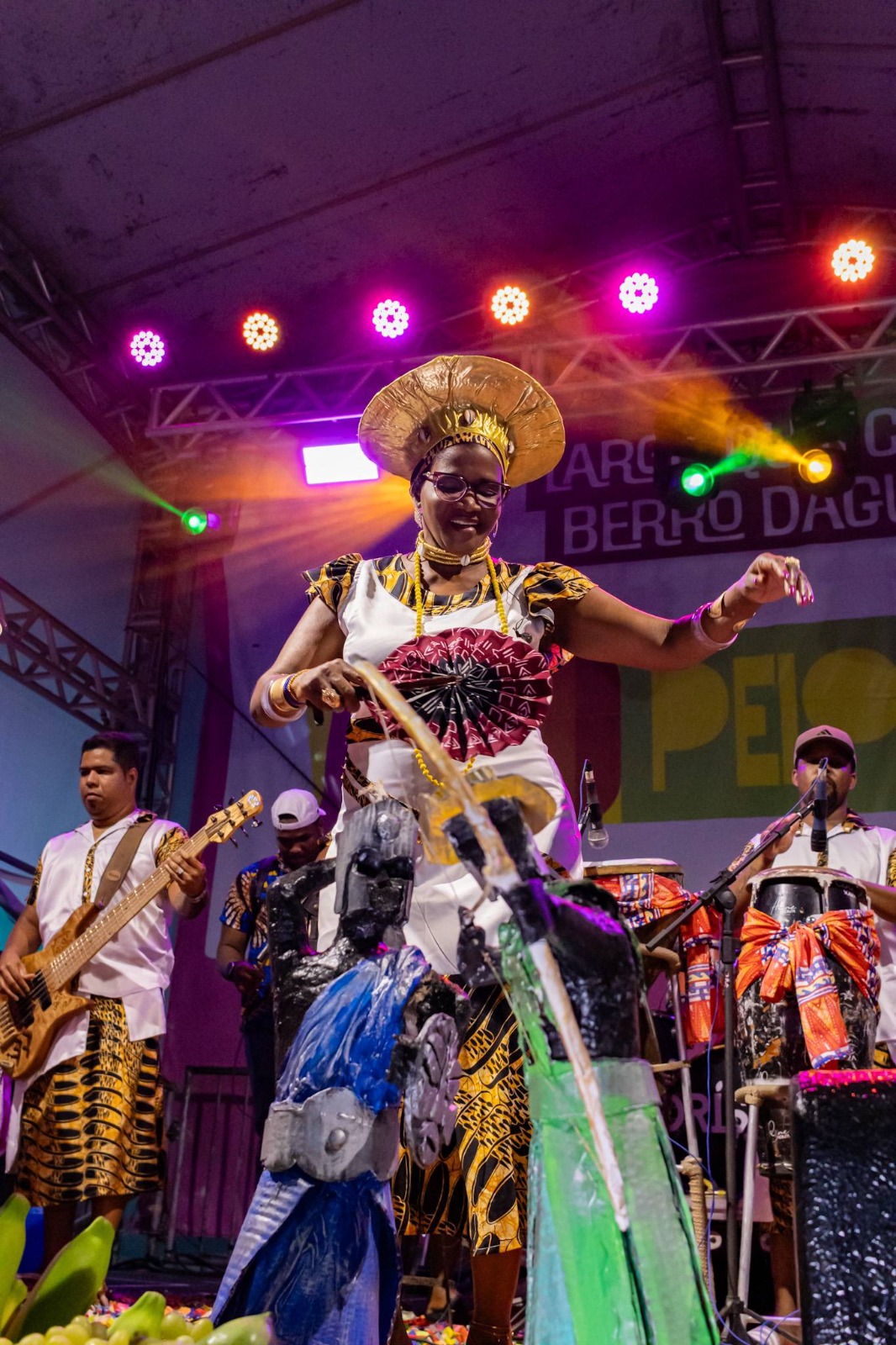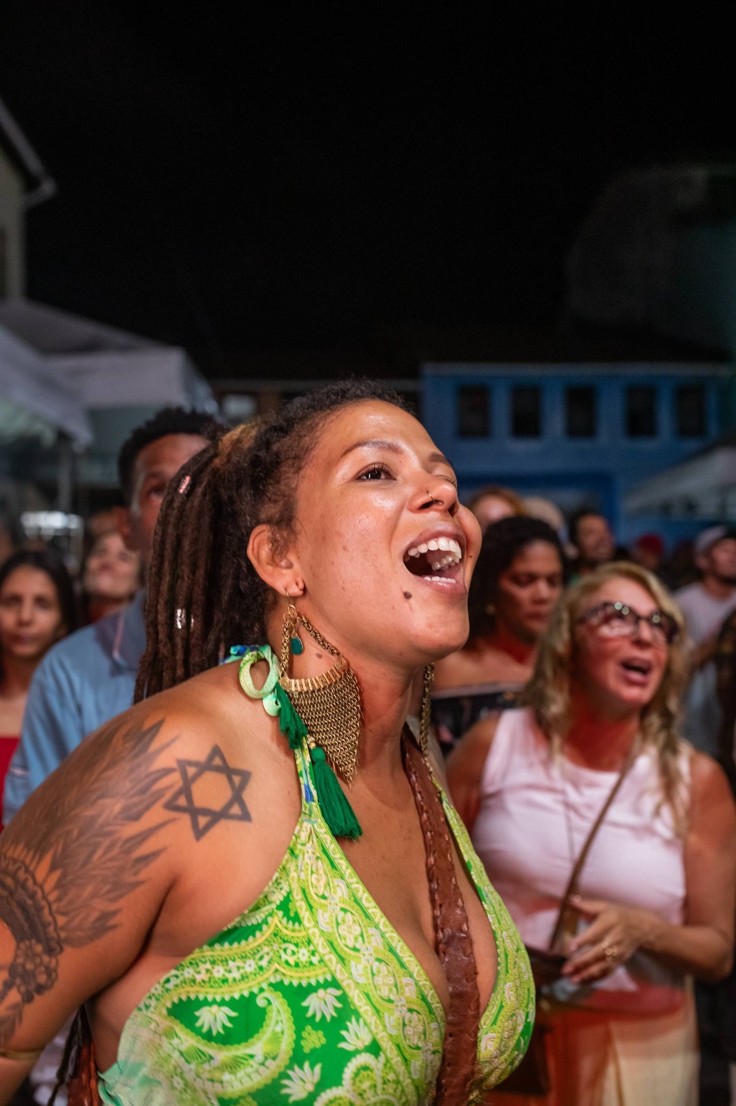 E garantindo a representatividade das religiões de matriz africana na sua música, dança e figurino, o grupo Orisun, idealizado pelo cantor Beto Jamaica, fez um brilhante show no Largo Quincas Berro D’água. Com um público diverso que agregava baianos e turistas, o evento contou com uma apresentação no palco, mas também no chão do largo, proporcionando uma verdadeira comunhão entre dançarinos e participantes. “É por essa troca que eu venho todo ano, mesmo morando fora do Brasil há algum tempo. Sou baiana e faço questão de vir todas as vezes ao Pelourinho”, contou a soteropolitana Clara Santos, que foi ao show com suas duas filhas.